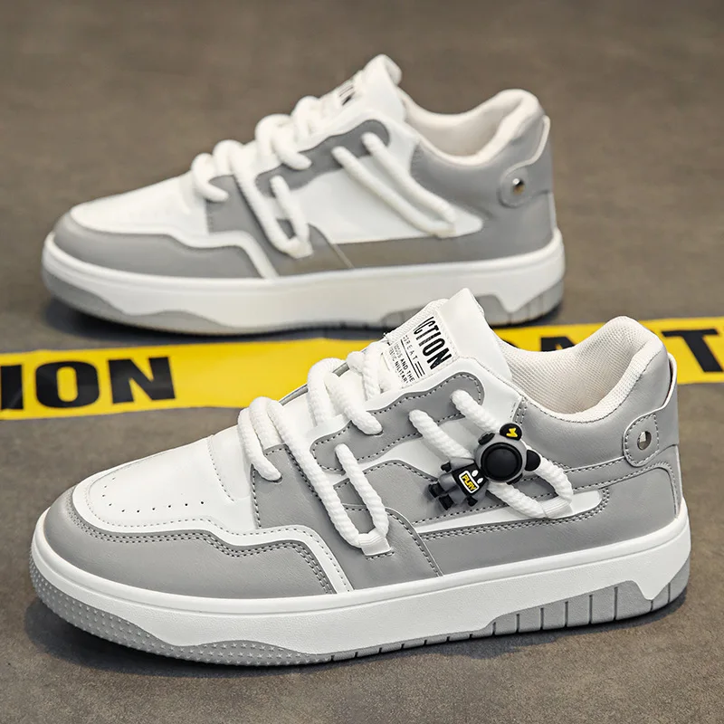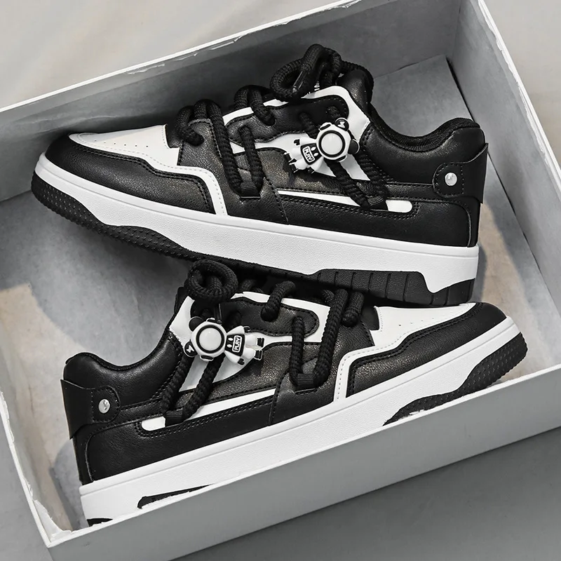 Men's New Trend Summer Skateboarding Shoes Breathable Leather Leisure Sports Board Shoes with Thick Sole Wear-Resistant Design