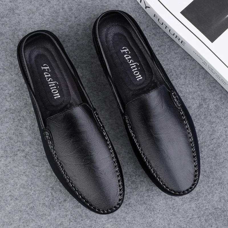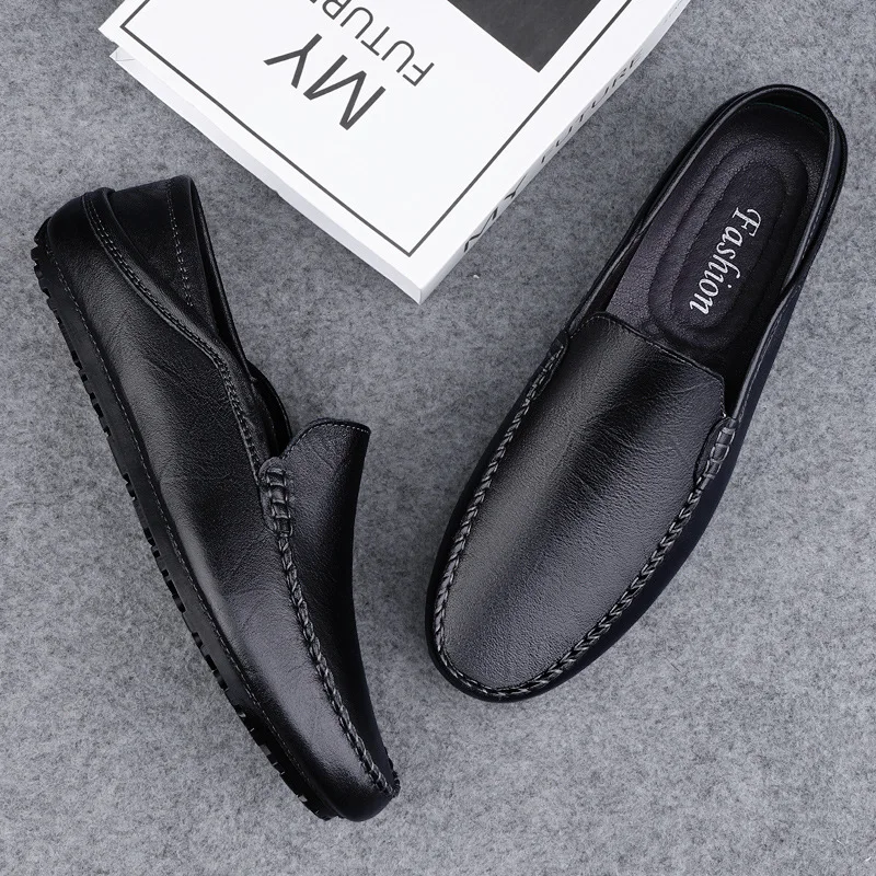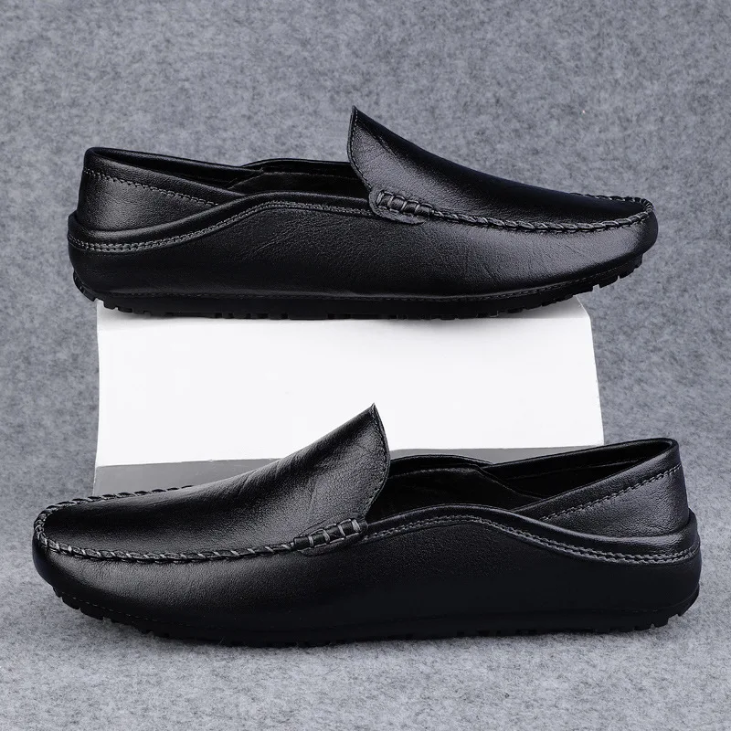 2026 Men's Casual Leather Shoes with Soft Leather Soles One-step Lazy Business Shoes Men Sneakers