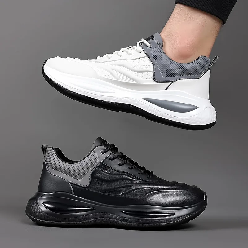 Factory Straight Leather New Casual Joggers Men's Shoes Waterproof Anti-slip and Wear-resistant Running Shoes Men