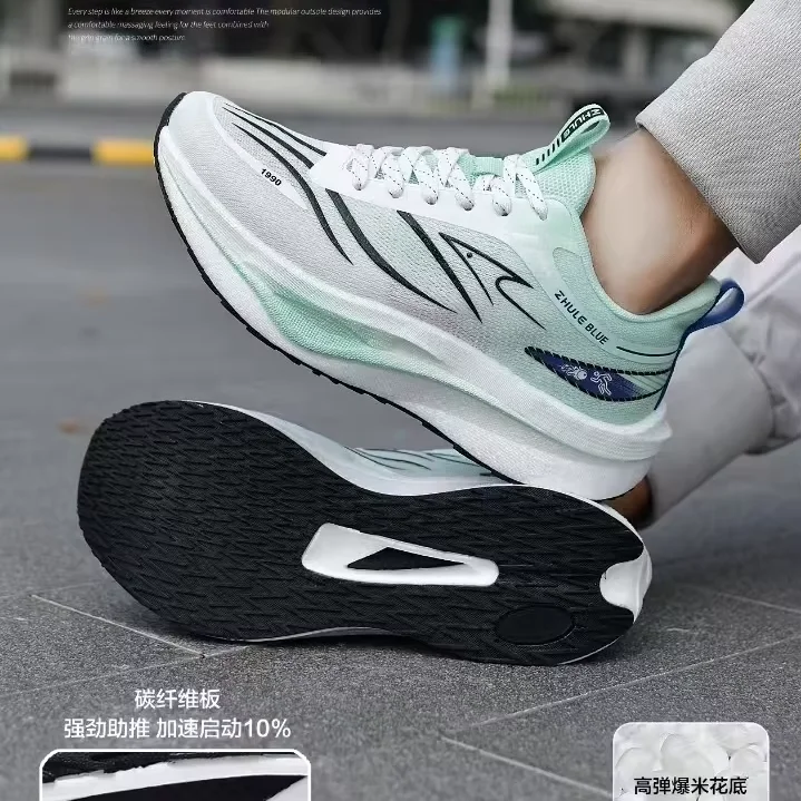 Men's Breathable Lace-Up Sport Running Shoes Carbon Plate Custom Logo Mesh Lining for Cushioning Trendy Fashion