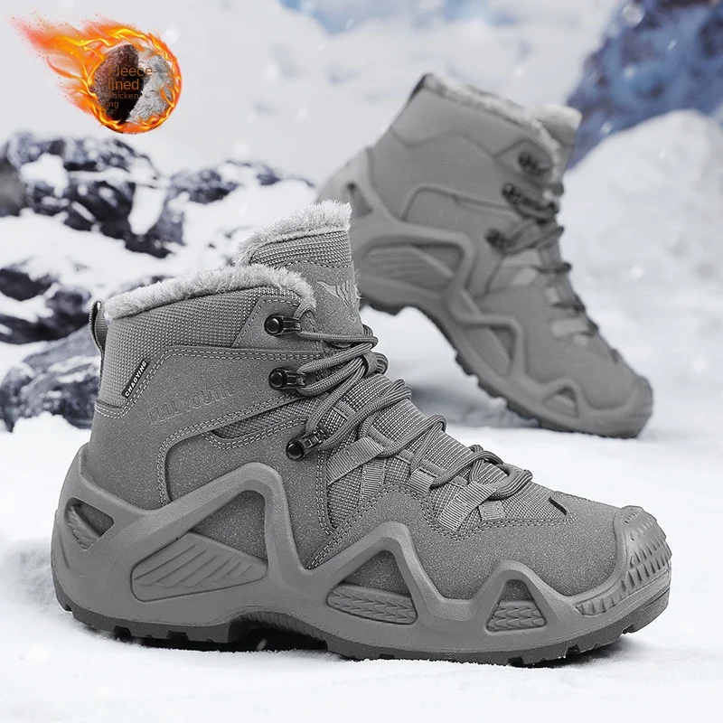Autumn Winter High-Top Men's Outdoor Non-Slip Climbing Boots Plus Size Thick-Souled Hiking Boots Insole Rubber
