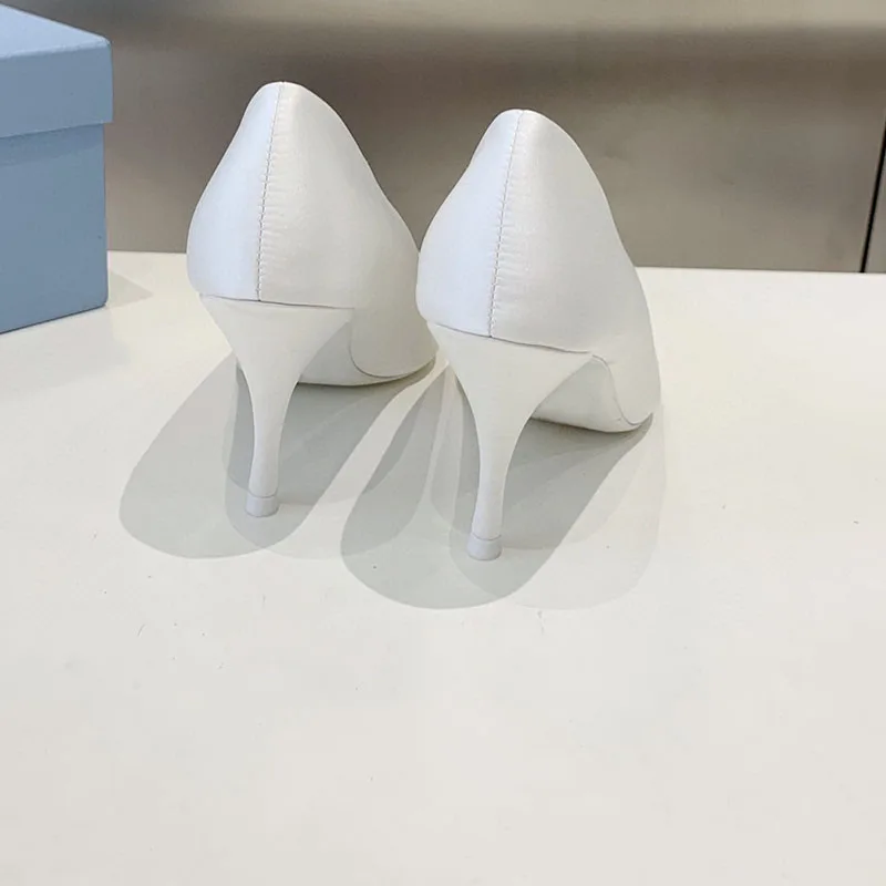 Silk High Heels Women's Genuine Leather Outsole White Fashionable Shoes Luxurious Quality Wedding Shoes Dinner Shoes