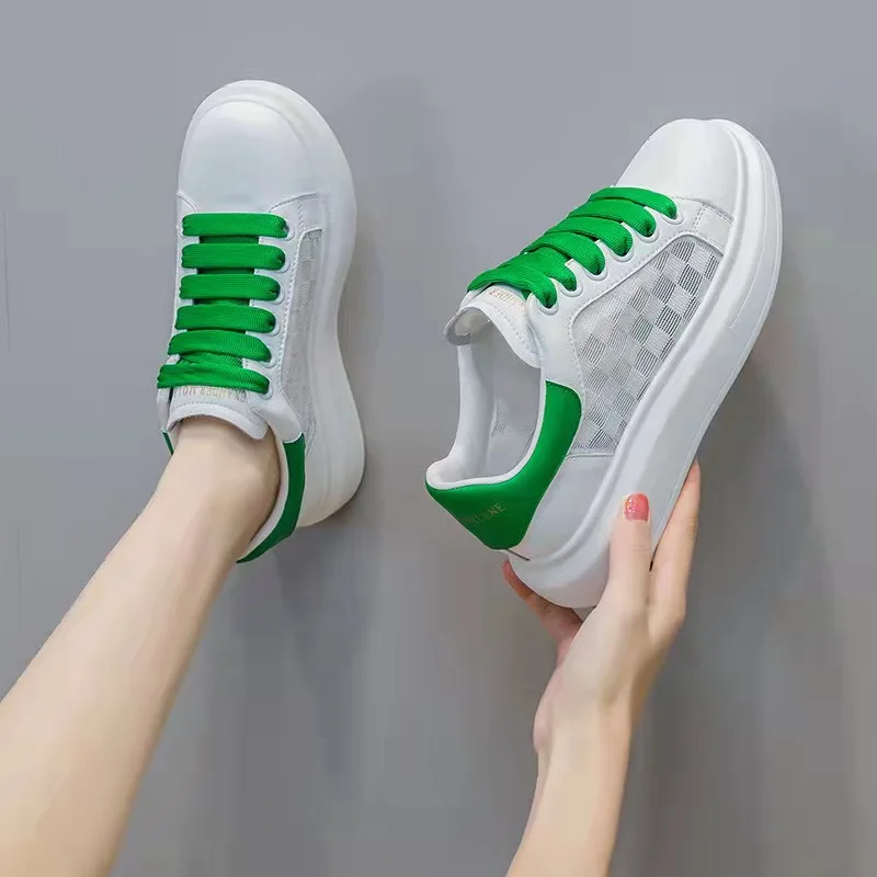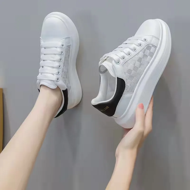 2026 Summer White Women's Sneakers Breathable Board Skateboarding Shoes New Internet Celebrity Hot Style Versatile Lace-Up