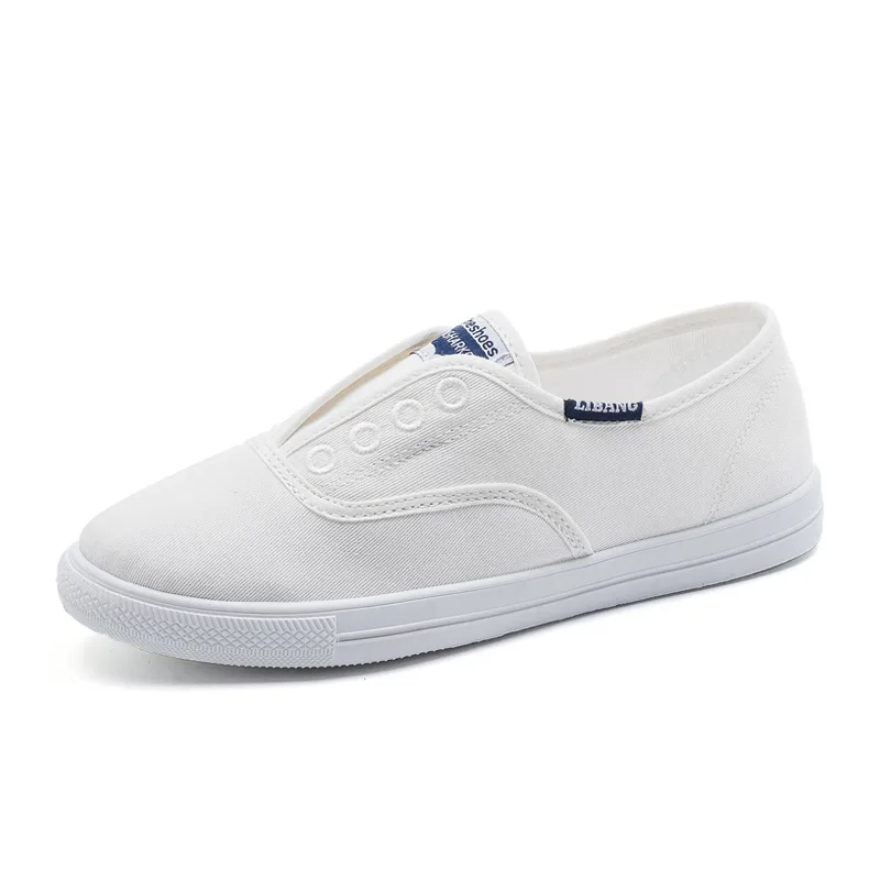Women's Spring Summer New Style White Korean Style Canvas Shoes Versatile Breathable Slip-On Flat with Height Increasing Feature