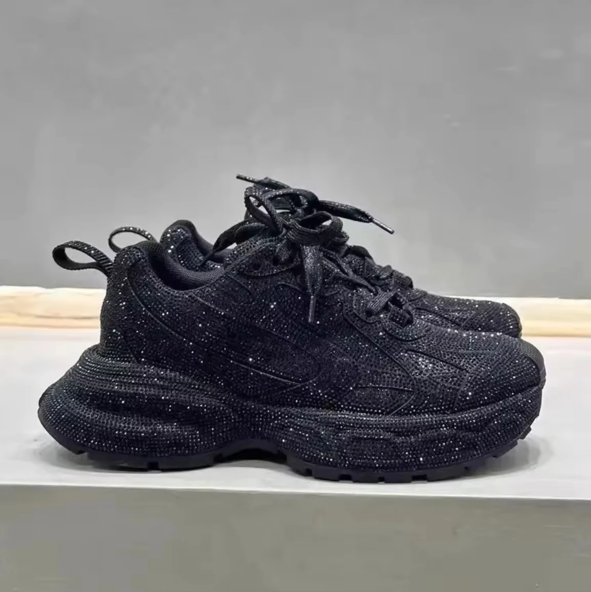 High Quality 2026 Women's Square Toe Chunky Sneakers Lace-Up Closure Casual Style Fashion Walking Shoes Mesh Cotton Fabric