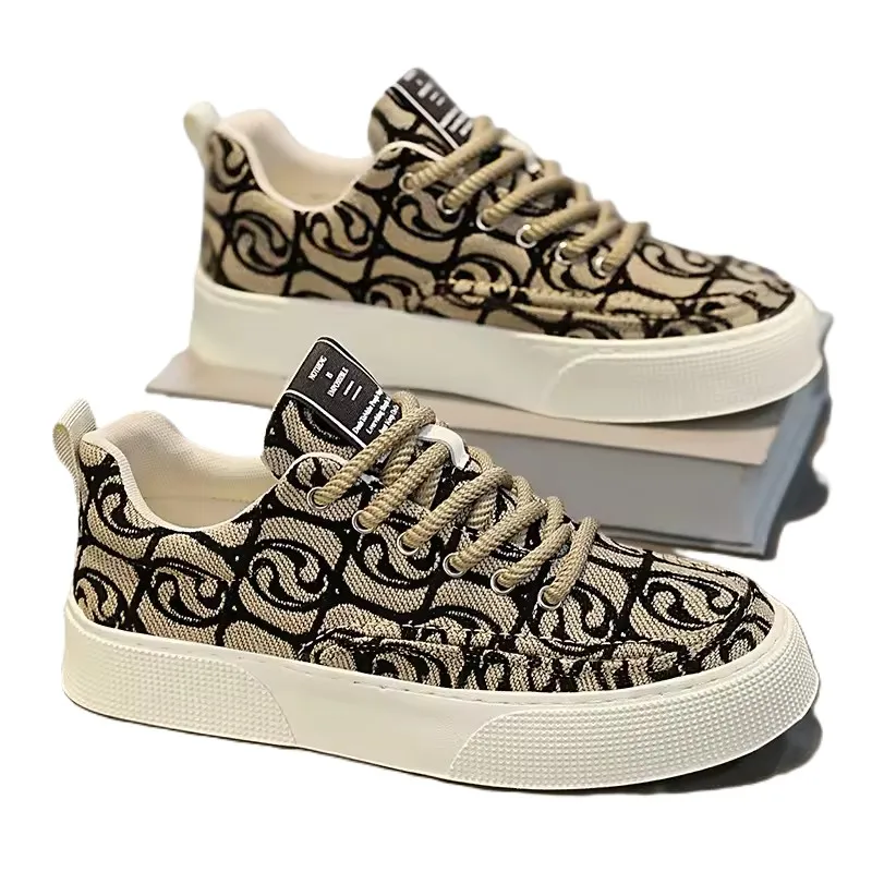 New Men's Low-Cut Canvas Shoes Breathable Cloth Surface Casual Comfortable Thick Flat Design with Printed Embroidered Details