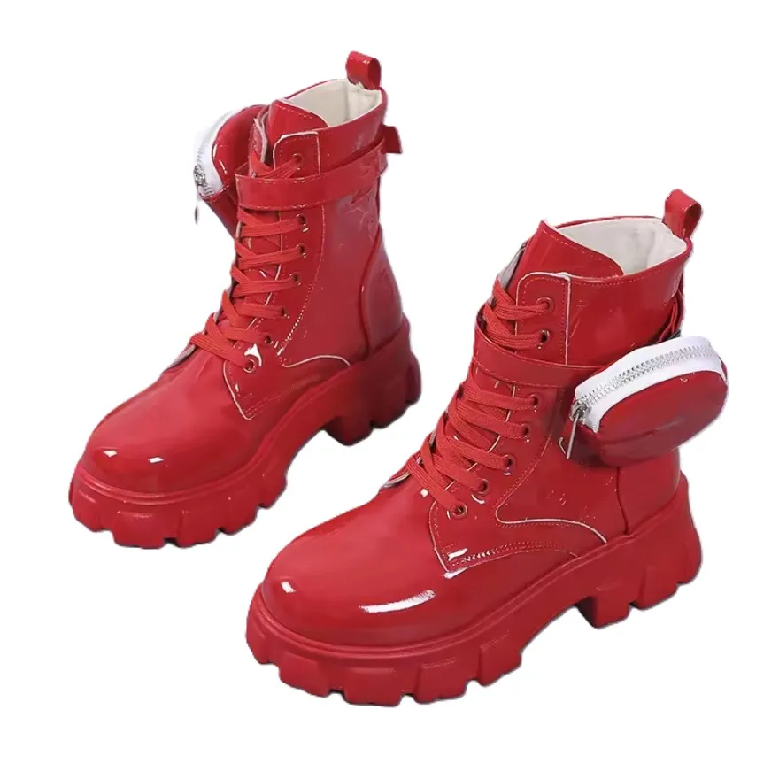 New Winter Autumn Festival Ladies Chunky Heel Ankle Boots Luxury Style Big Size PU Elastic Band Rubber Strip for Drop Shipping