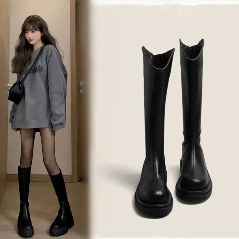 Classic Popular Height-Increasing Boots Petite Women Winter Thick-Soled EVA Midsole Rubber Outsole Fleece-Lined Knee-High Button