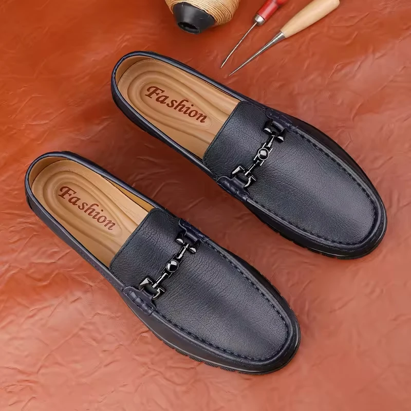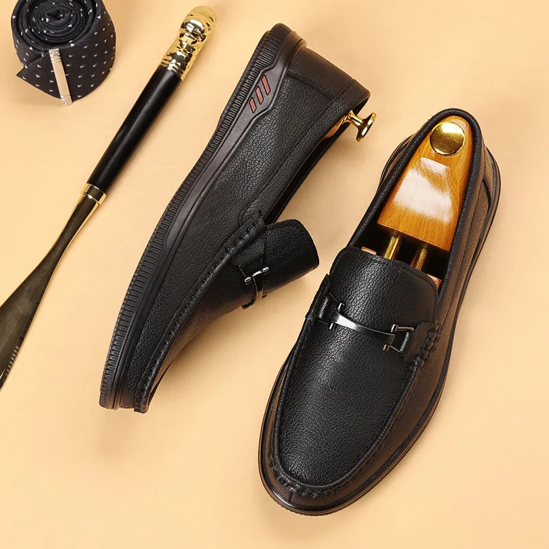 Business Casual Men's Uniform Autumn Dress Shoes Oxford Loafers Derby Flats Genuine Cow Leather Round-Toe Low-Top Slip-On Rubber