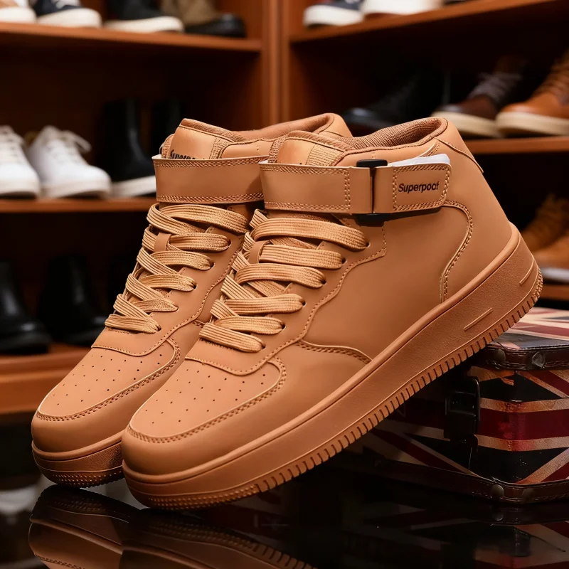 Couple-Friendly Men's High-Top Running Shoes Winter Trendy White One-Size Breathable Mesh Lace-Up Inner Height Increase