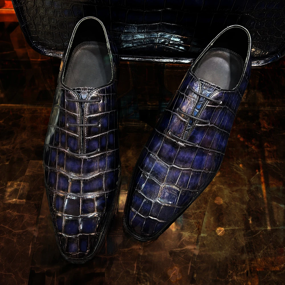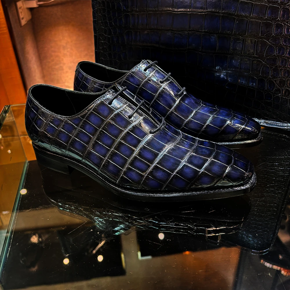 Handmade Stylish Lace-Up Luxury Men Shoes Genuine Crocodile Leather Men Dress Shoes Customized Party Shoes Men