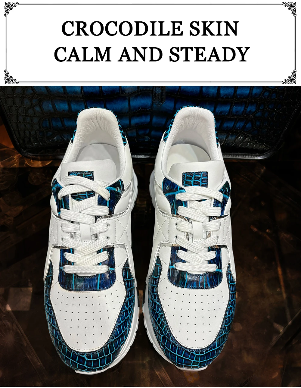 Hot-selling Crocodile Leather Sports Shoes for Men Fashion Sneakers Rubber Sole Walking Men's Leather Shoes Casual Men Shoes