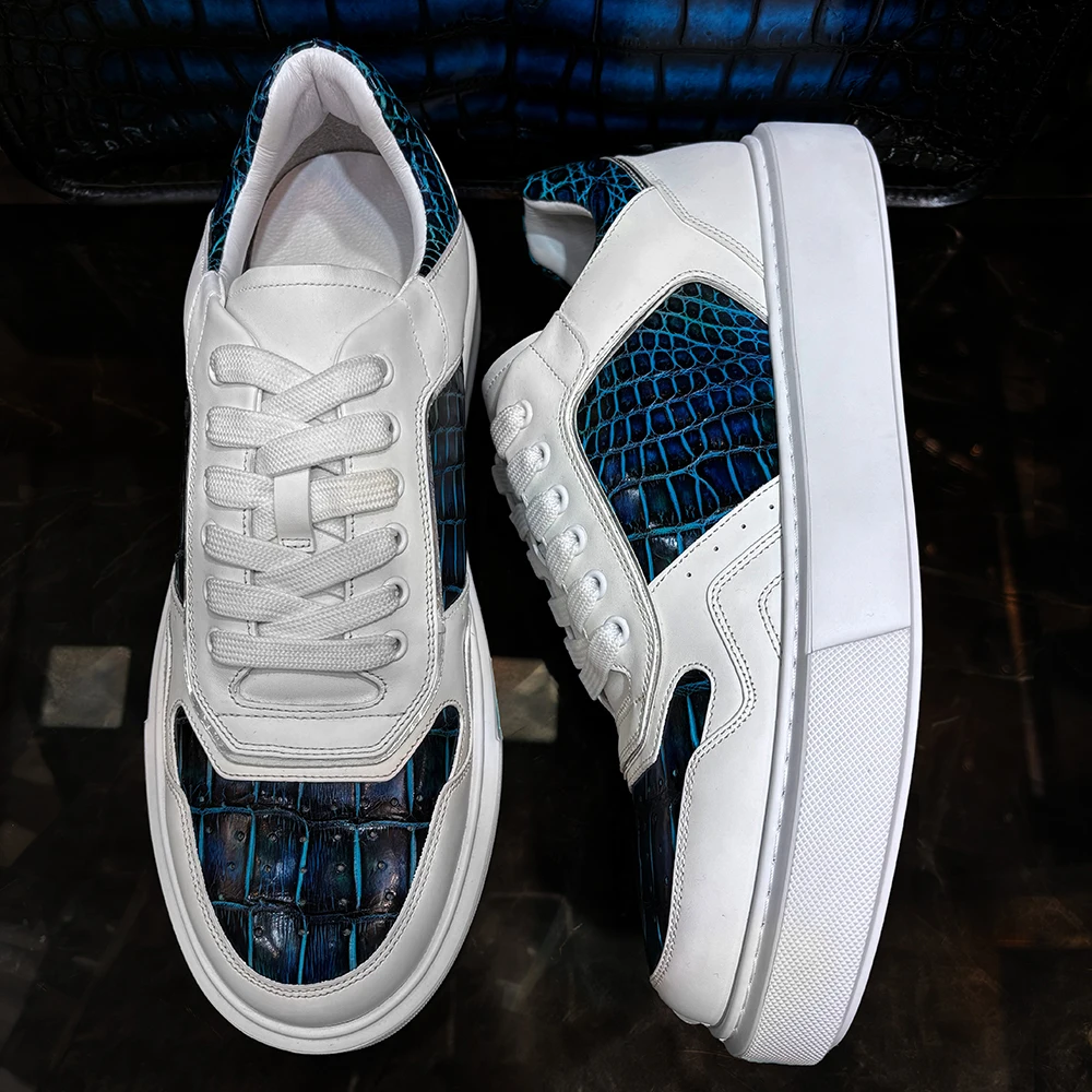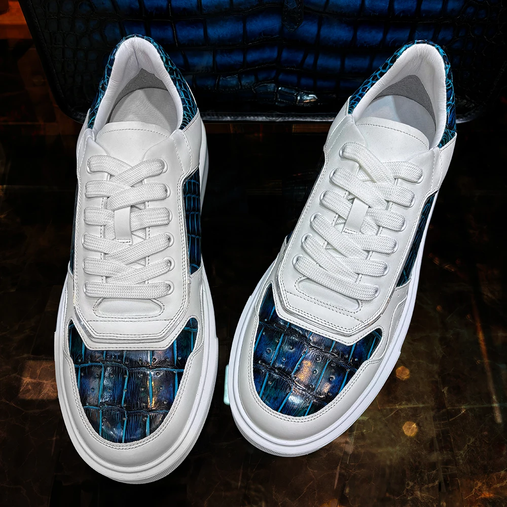 Stylish Genuine Crocodile Leather Luxury Shoes Men Breathable Skateboard Men's Leather Shoes Lace-up Walking Style Men Shoes