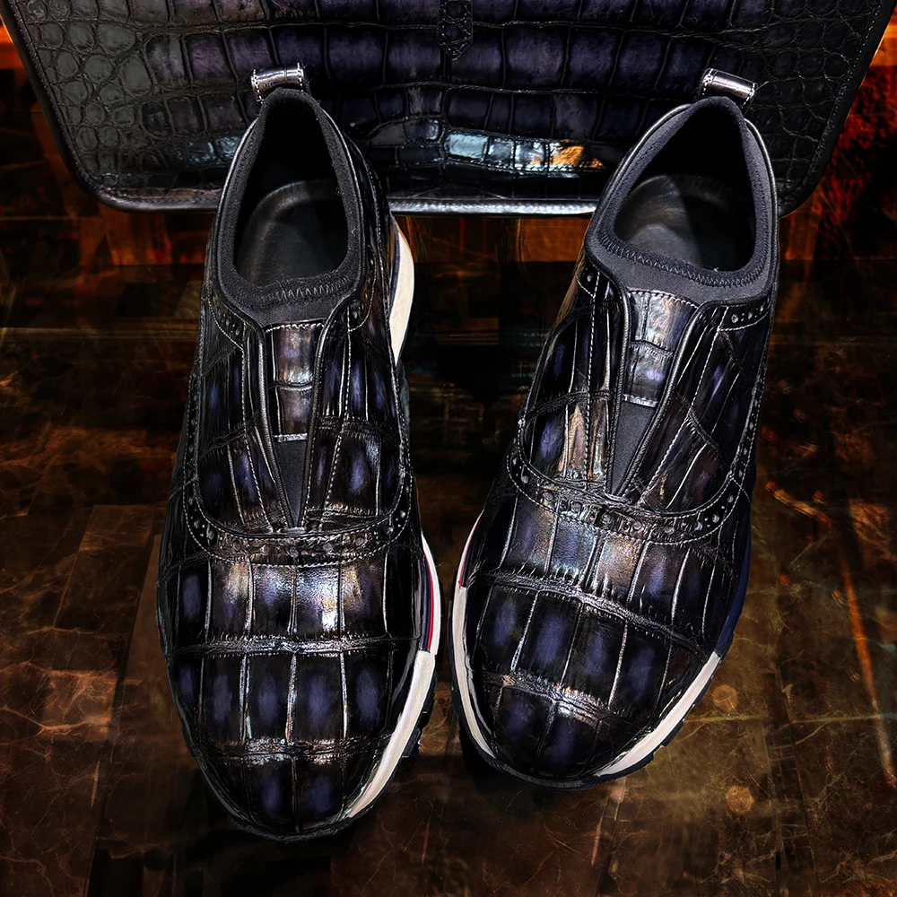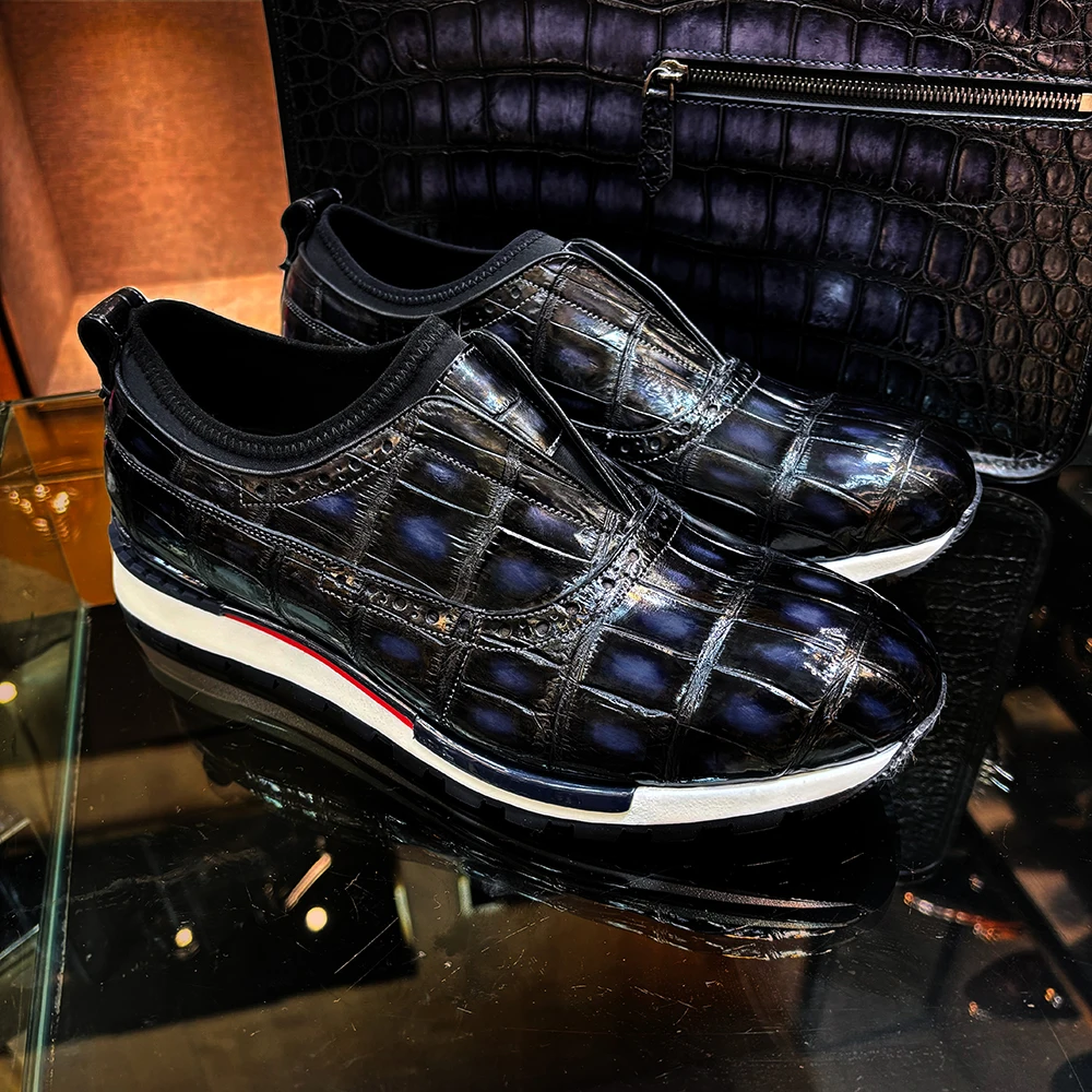 Comfortable Crocodile Leather Shoes Men Fashion Sneakers Rubber Sole Sport Shoes Men Luxury Exquisite Casual Sport Men Shoes