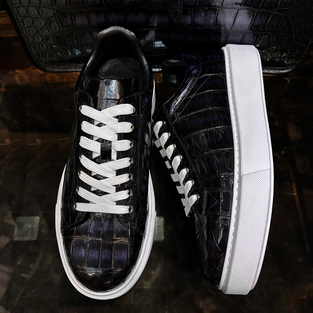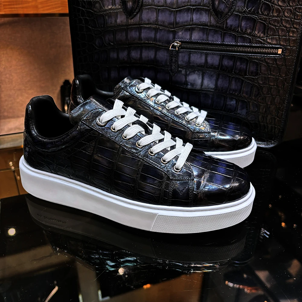Handmade Genuine for Leather Mens Luxury Shoes Light Weight Soft Skateboard Shoes Lace-up Walking Rubber Outsole Men Shoes
