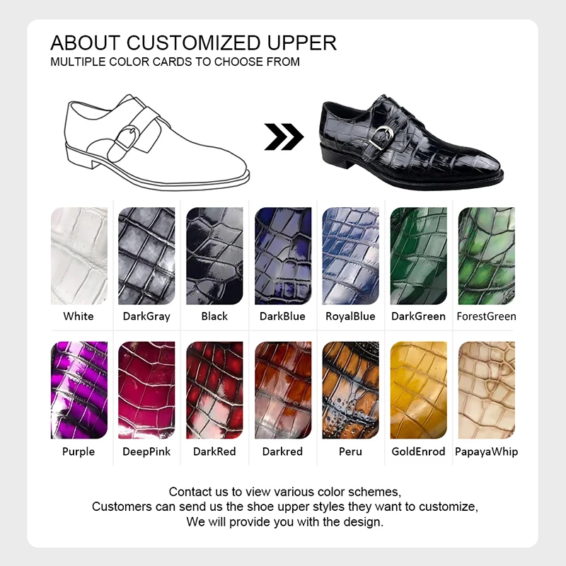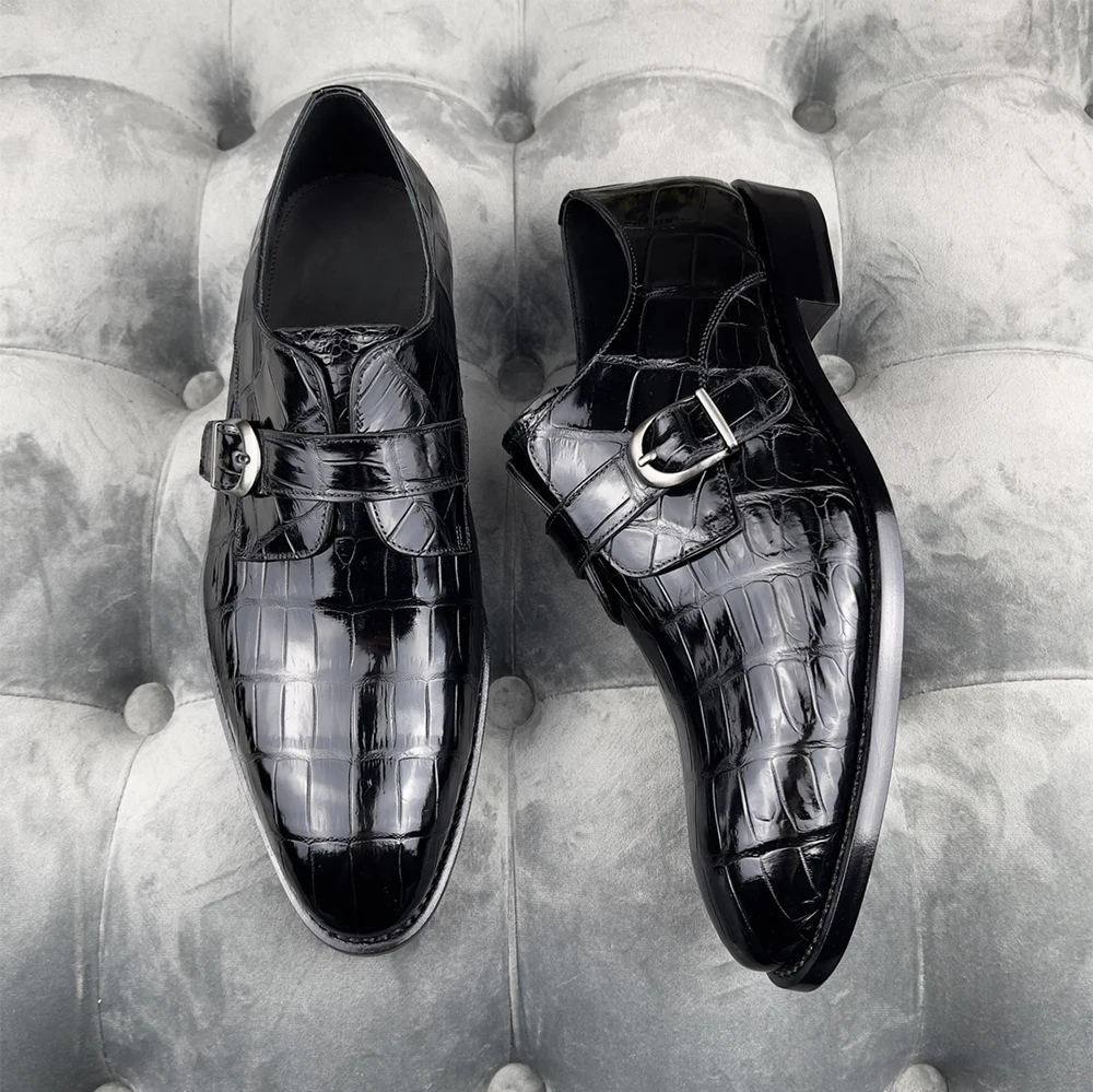 Handmade Customized Men Wedding Shoes Comfort Slip-On Men Shoes High Quality Monk Strap Stylish Crocodile Leather Men's Shoes