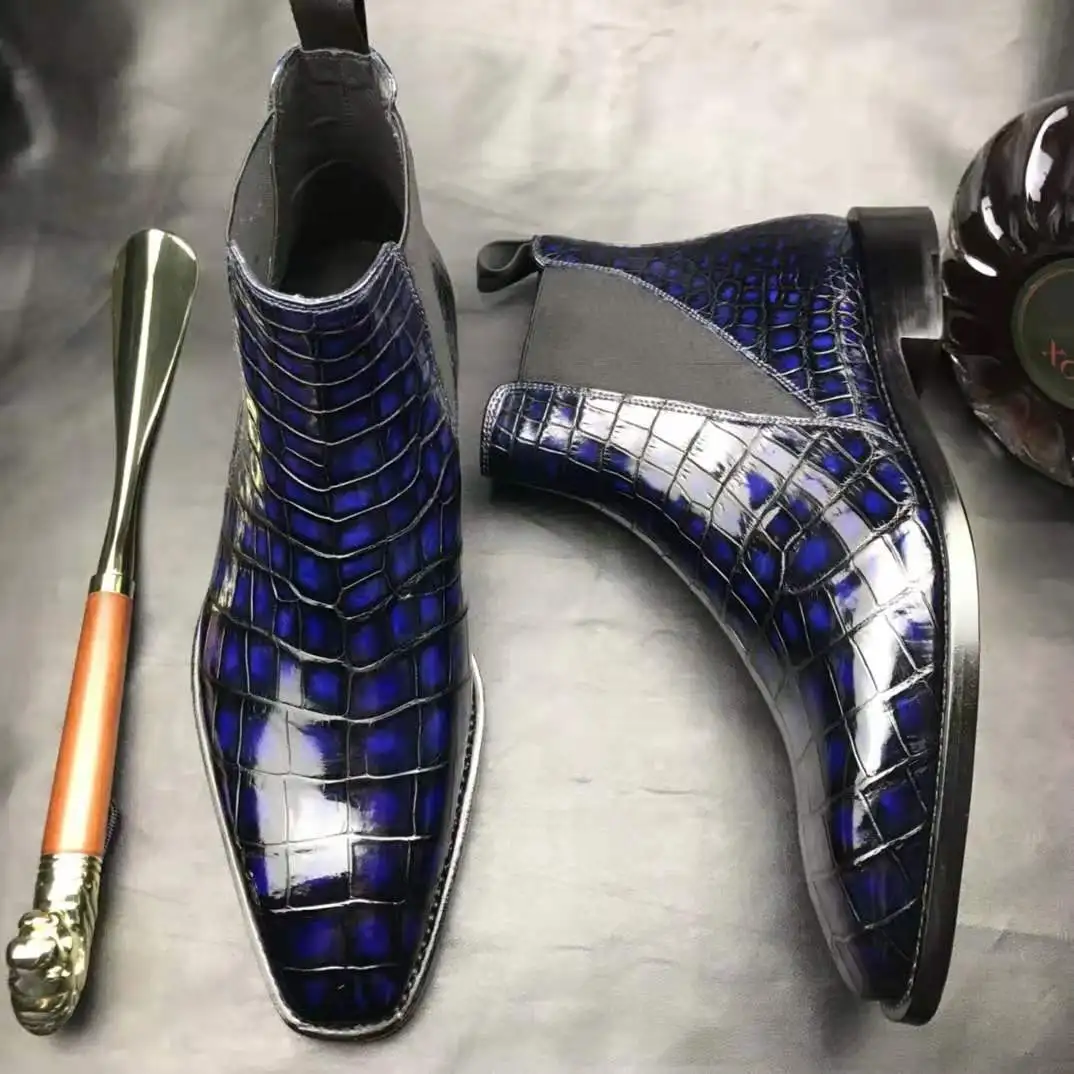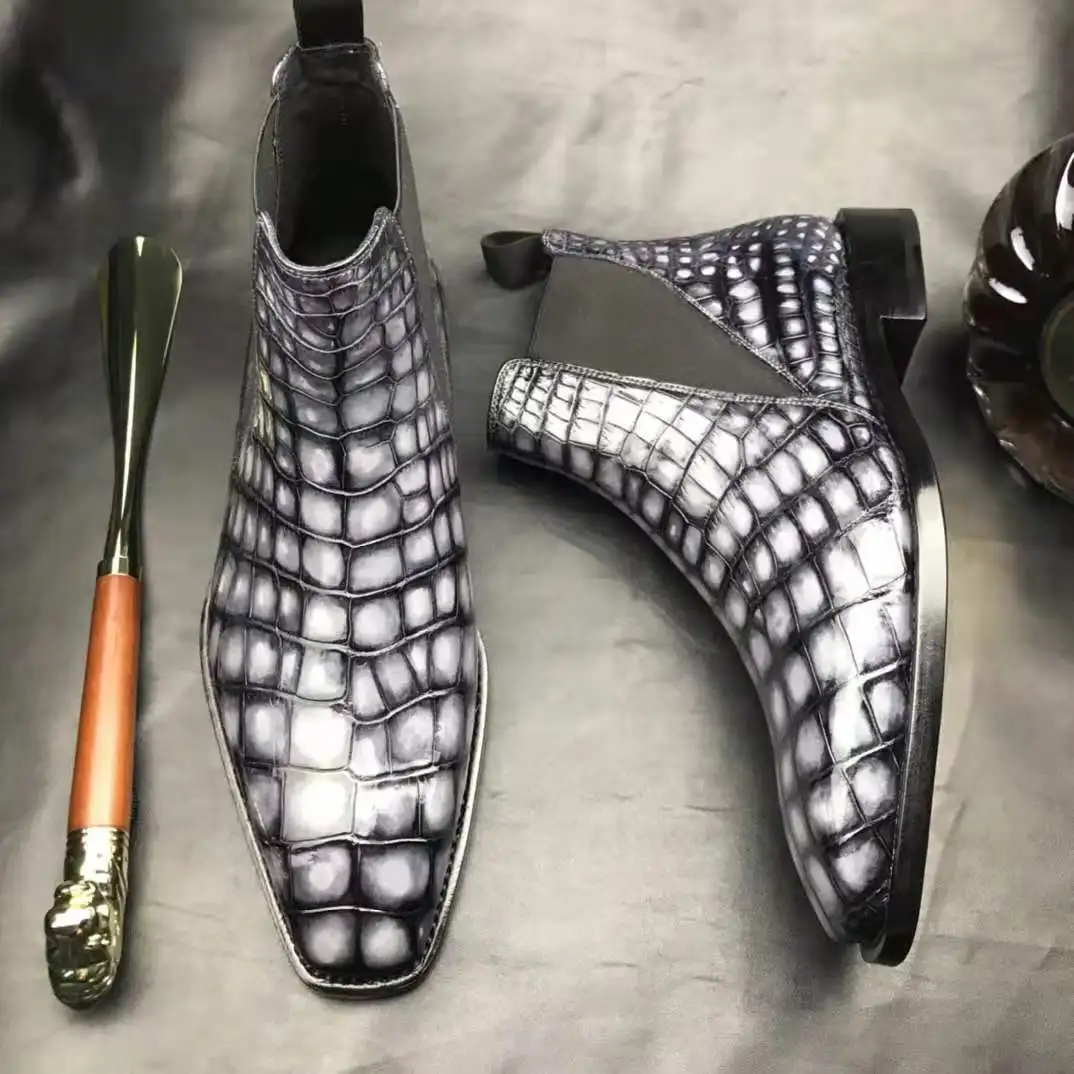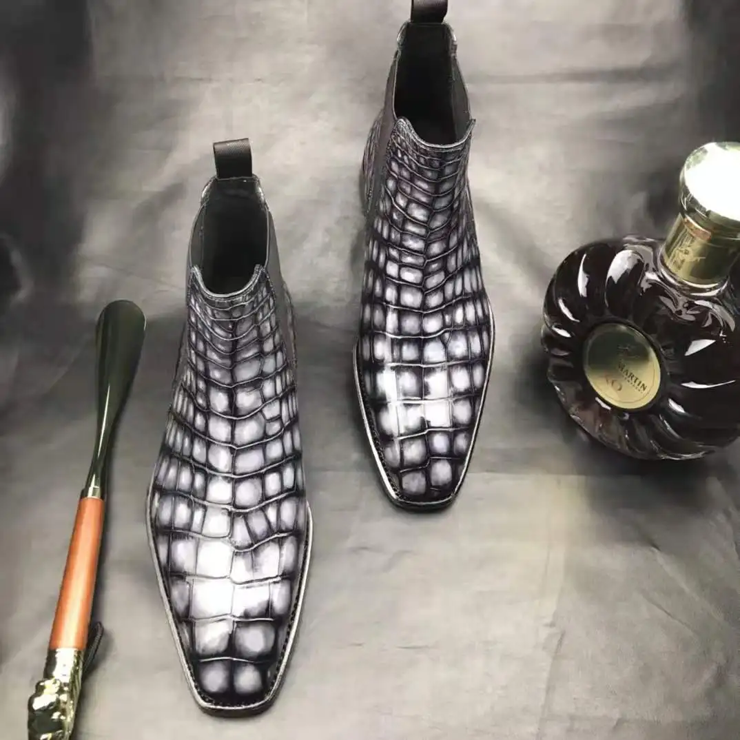 Goodyear Handmade Luxury Man Boots Genuine crocodile Leather Ankle Chelsea Boots Men Customize slip on Party Mens Winter Boots