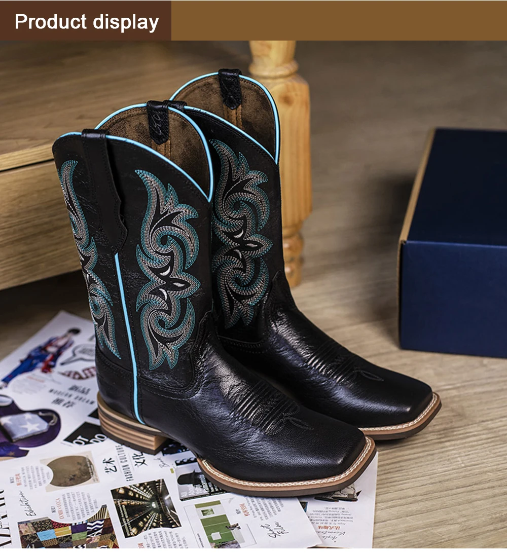 Classic Cowboy Boots Women Shoes Genuine Leather Goodyear Welt Square Toe Ankle Boots Female Flat Western Boots