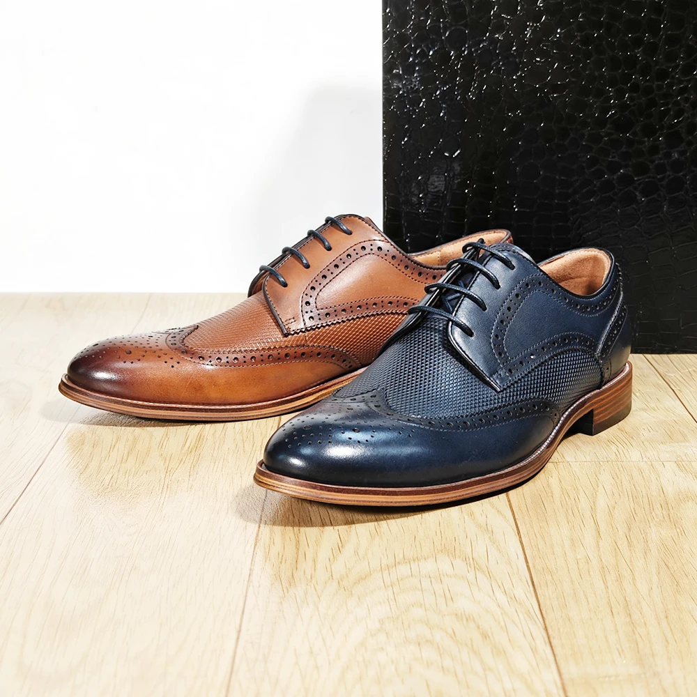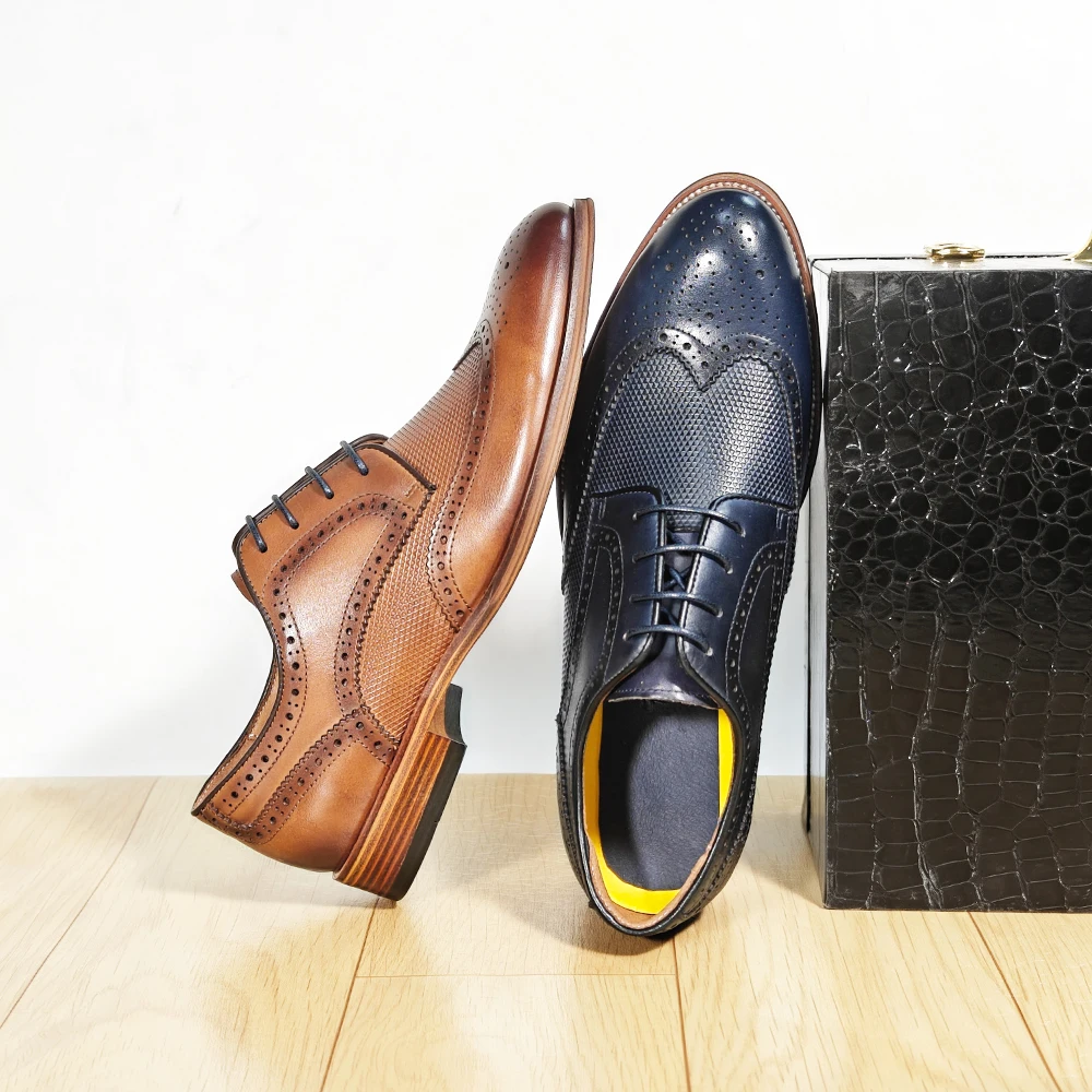 Wholesale Business Men's Dress Shoes High Quality Formal Rubber Oxfords Office Shoes Zapatos De Hombre Lace-up Leather Shoes Men