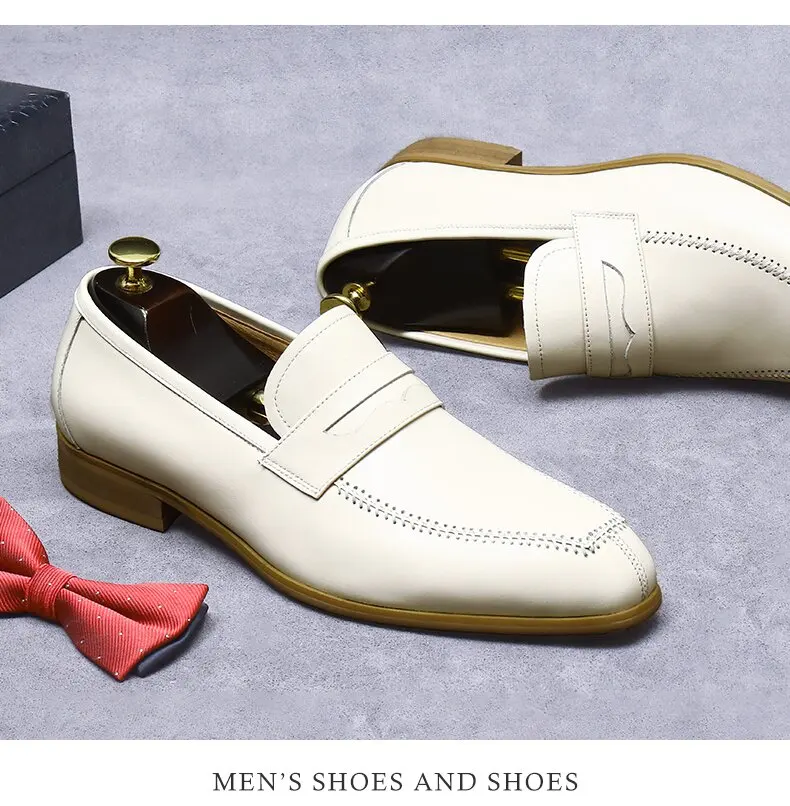 High Quality Slip on Shoes Men Chaussures Hommes Genuine Leather Moccasin Loafers White Wedding Shoes Luxury Casual Men Shoes