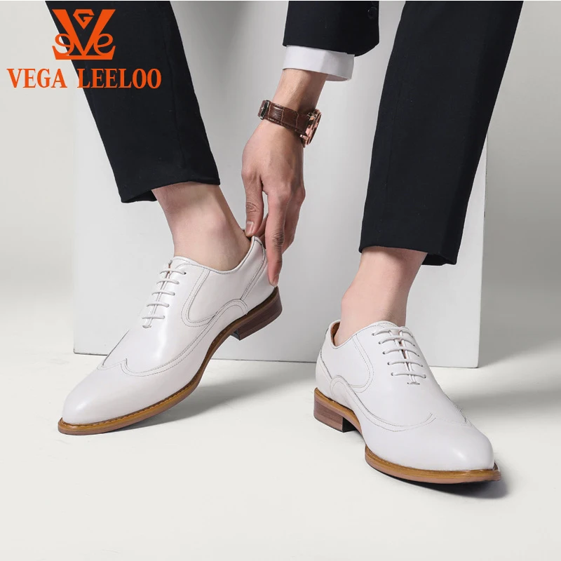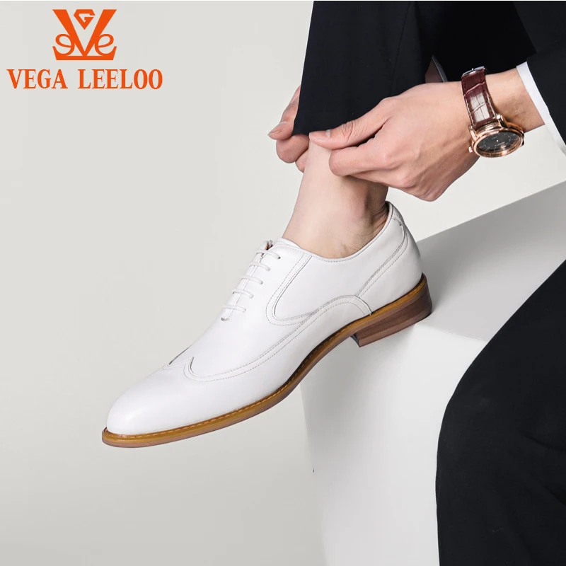 High Quality Luxury Brand 2026 New Arrival Fashion White Color Wedding Formal Dress Full Grain Leather Brogue Oxford Shoes
