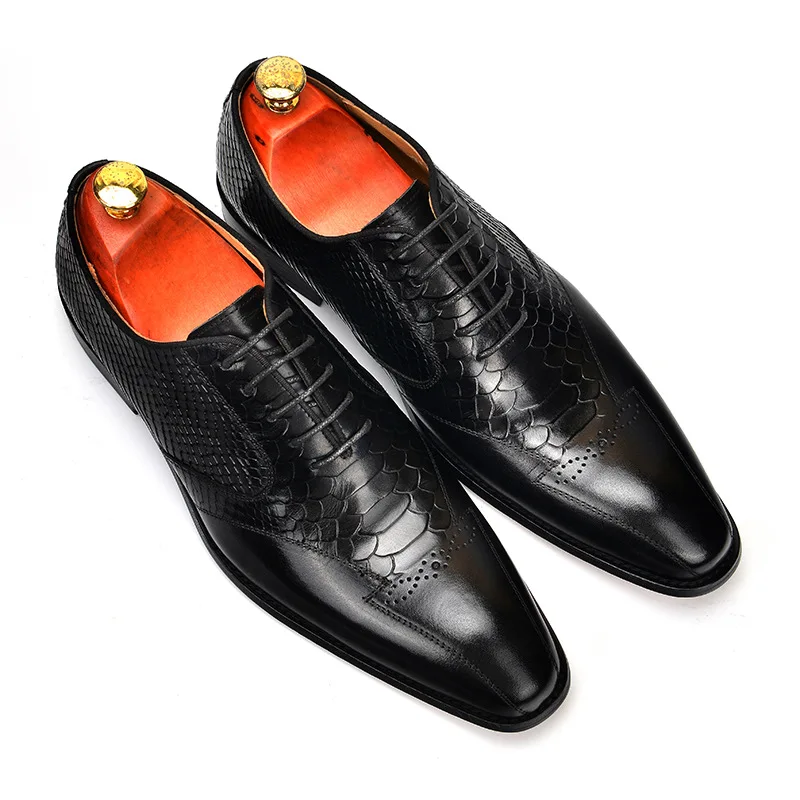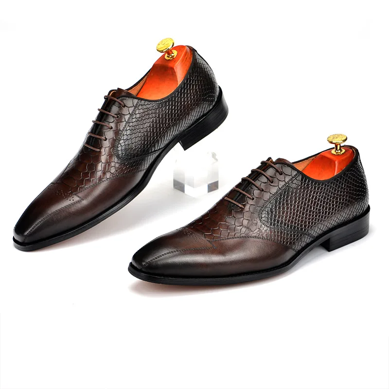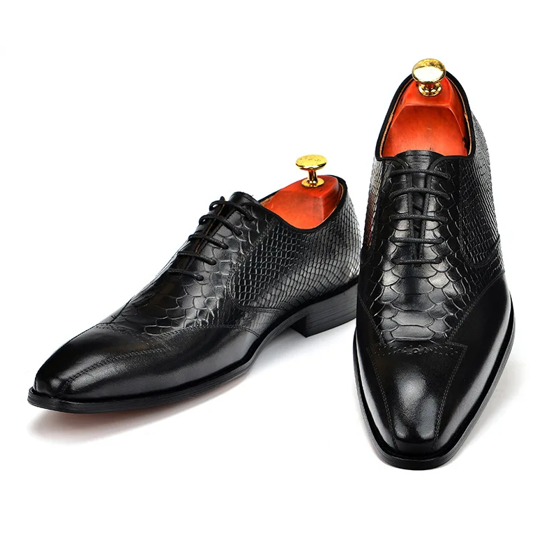 Mens Handmade Dress Business Shoes Round Toe Full Brogues Full Grain Calf Leather Bespoke Shoes