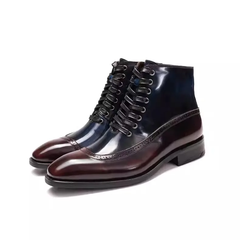 New Design Handmade Boots Sewing Leather Sole Business Formal Fashion Patent Leather Blake Ankle Shoes