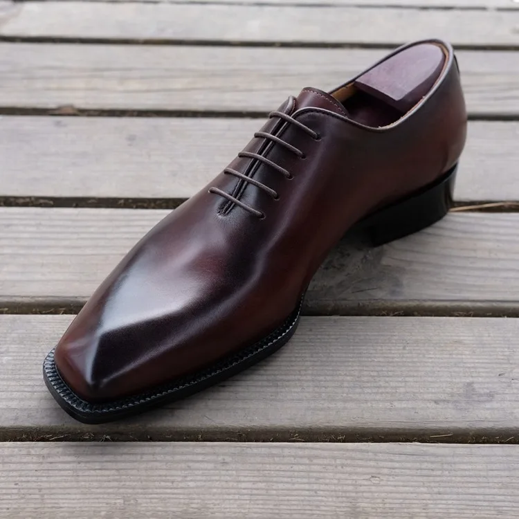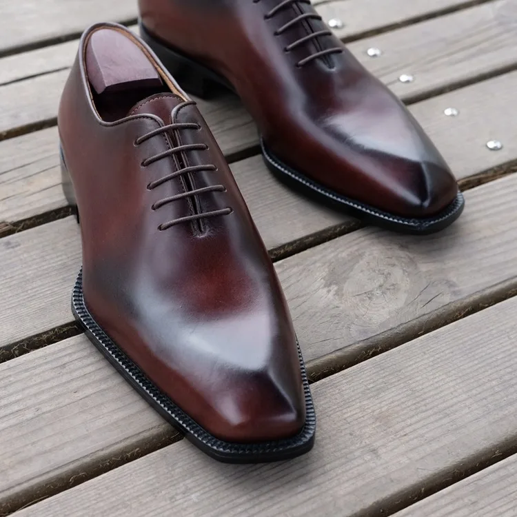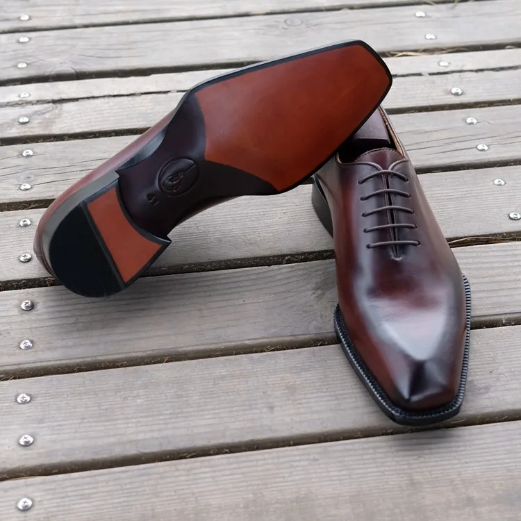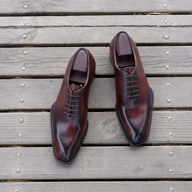 Men's Goodyear Welted Office Shoes Formal Dress Italian Leather Beveled Fiddle-Waist Business Footwear