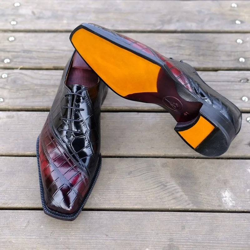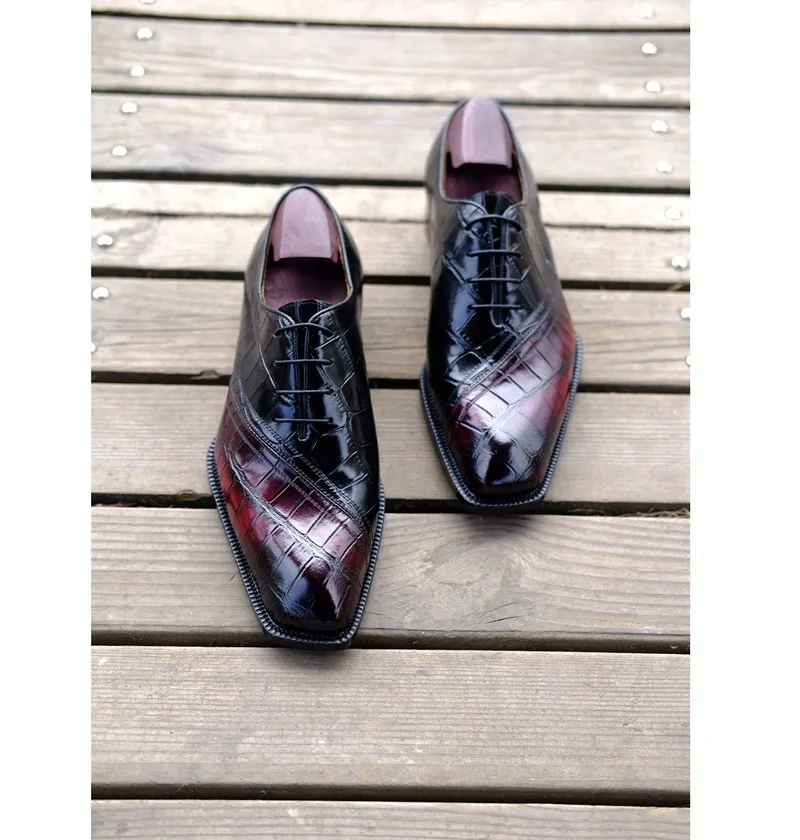Men Pure Genuine Leather Bespoke Goodyear Welted Handmade Shoes Hand-stitched Mixed Color Leather Sole Blind Stitch Men Shoes