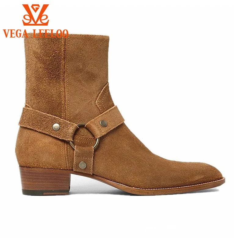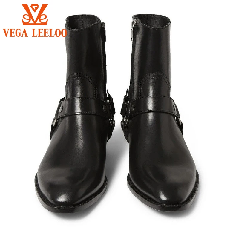 New Trendy Brand Boots Side Zip Flat Fashion Business Ankle Genuine Leather Chelsea Boots Men Plus Size 48