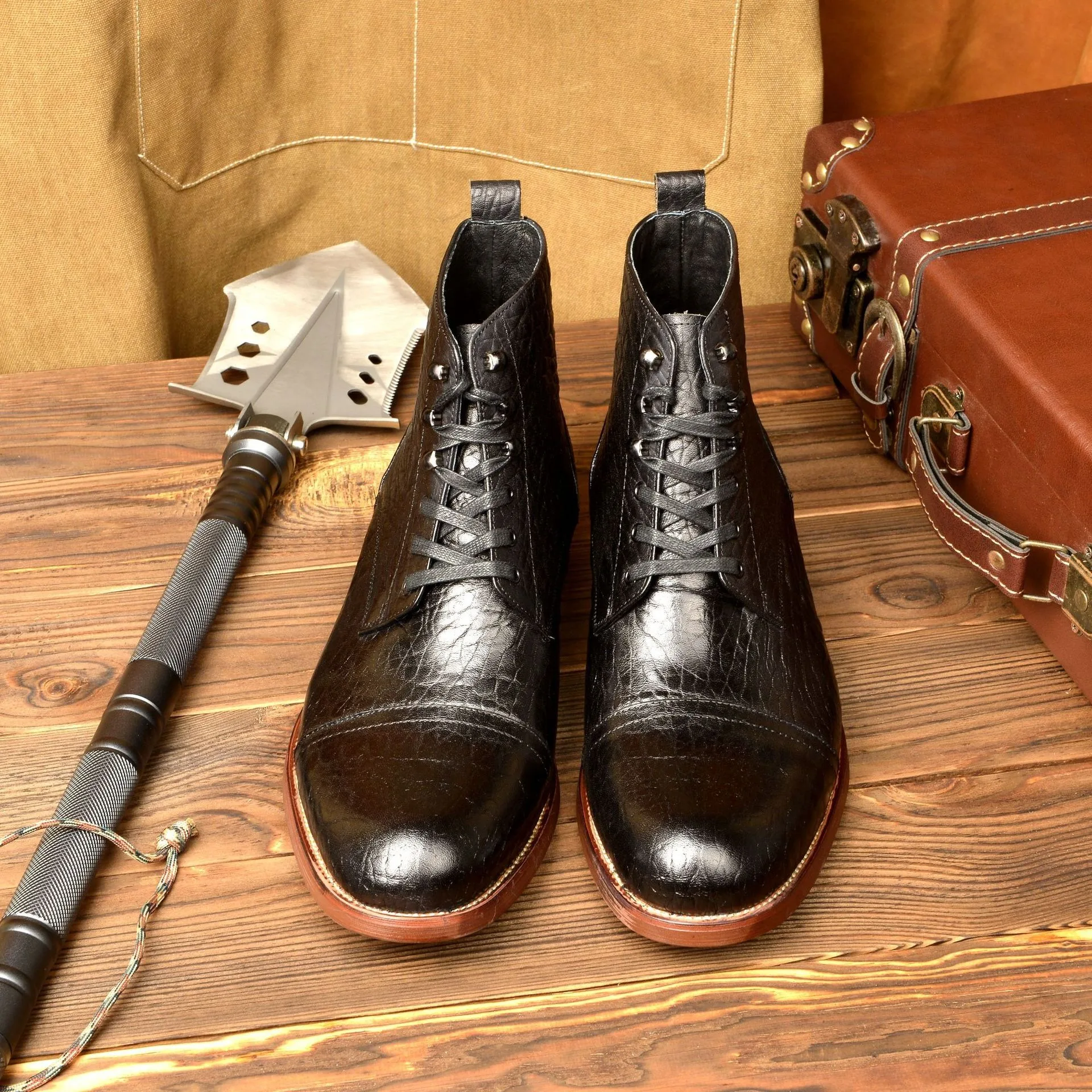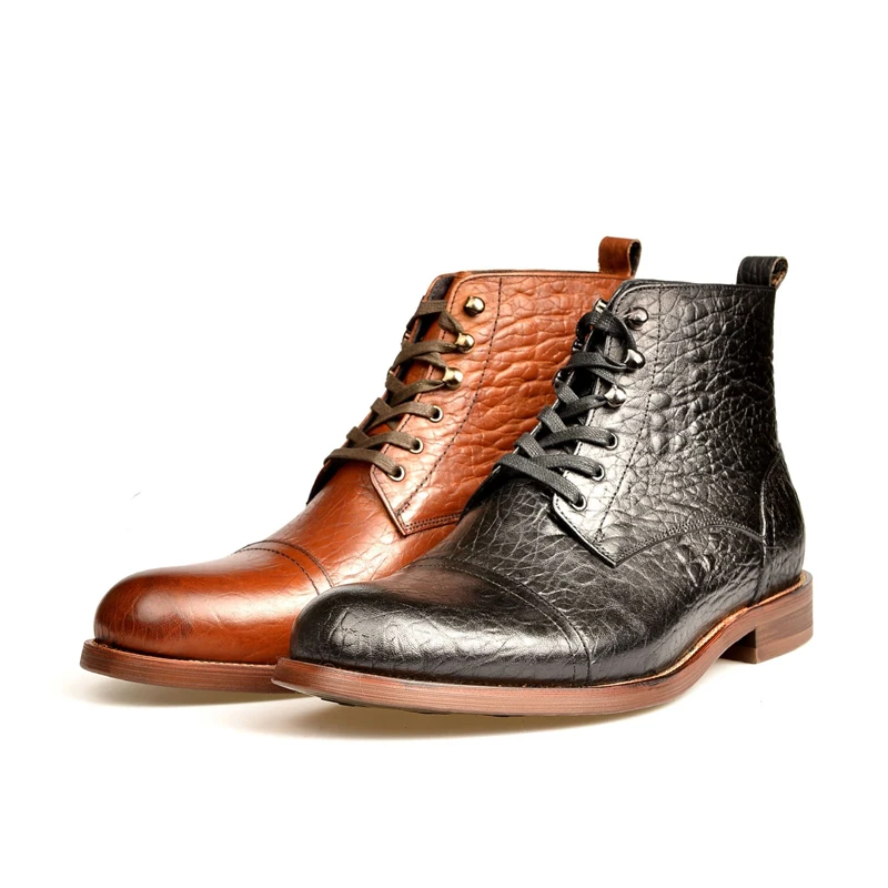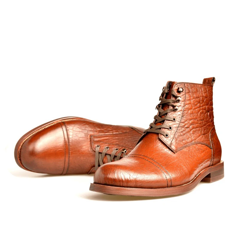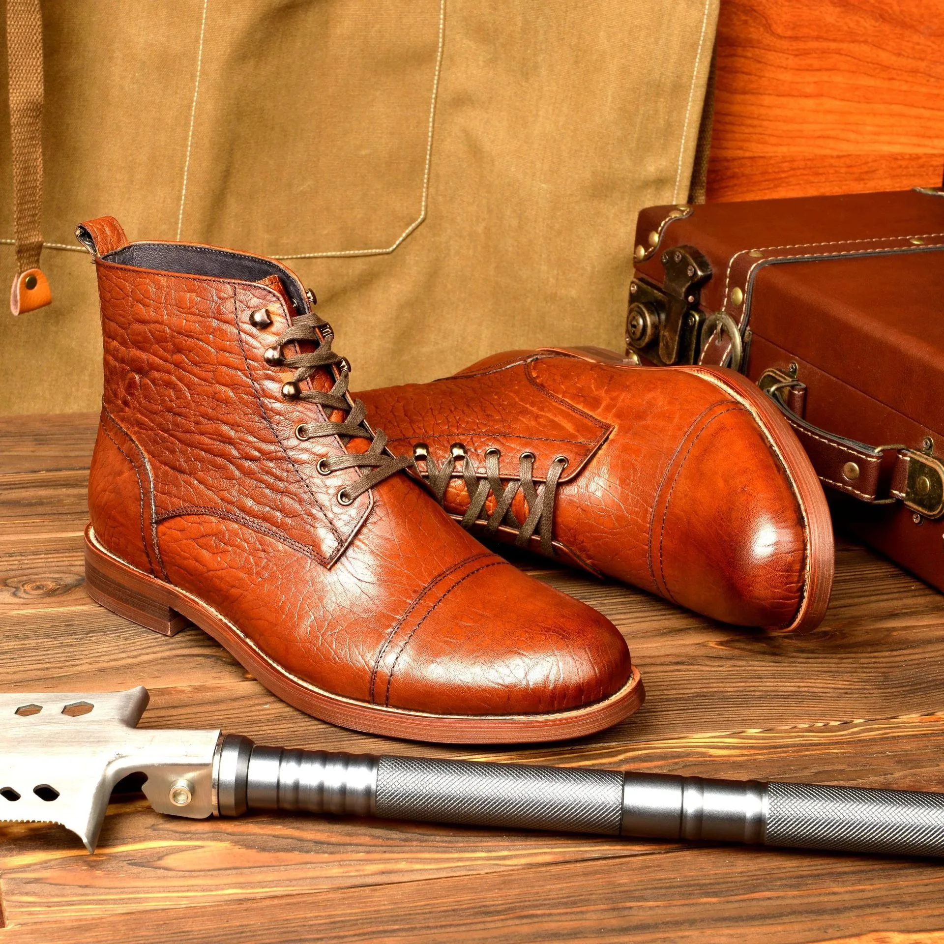 VINTAGE BROWN WORK BOOTS Genuine Full-Grain Leather with Distressed Texture Steel Eyelets Rugged Outdoor Ankle Boots