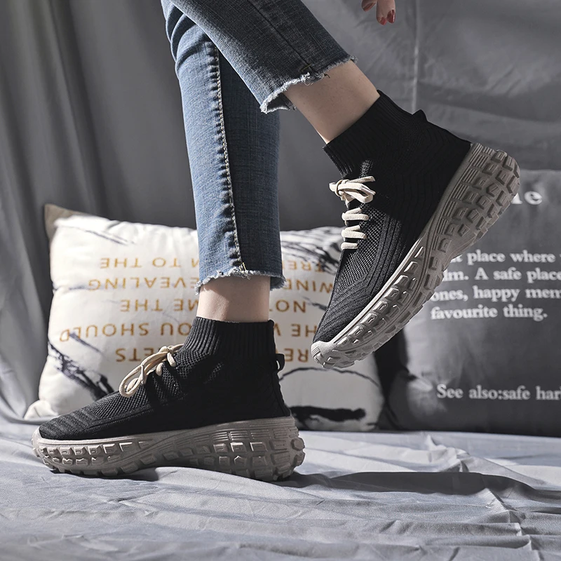 customized logo outdoor breathable women's shoes fly woven women's slide women's running shoes