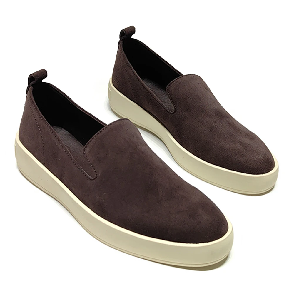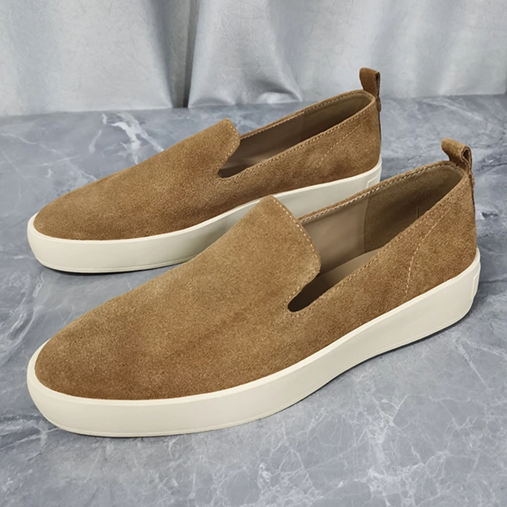 New Genuine Suede Leather Women's Shoes Rubber Soles Loafers Casual Comfortable Cowhide Round Head Thick Bottom Single Shoes