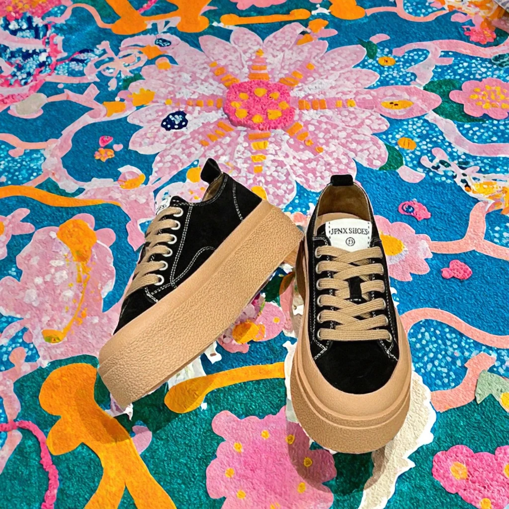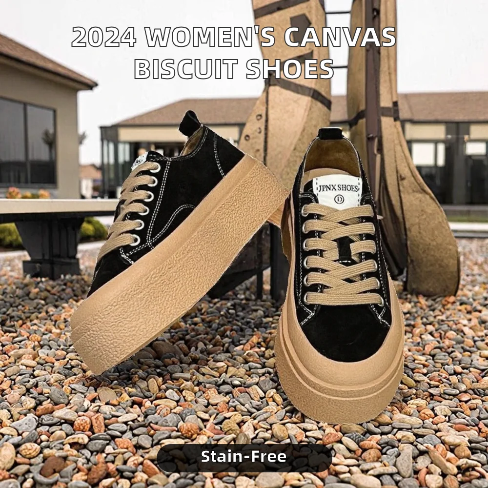 2026 New Women's Biscuit Shoes for Spring Summer Light Weight Canvas Thick Soles Platform Hard-Wearing Increase Strap Head Style