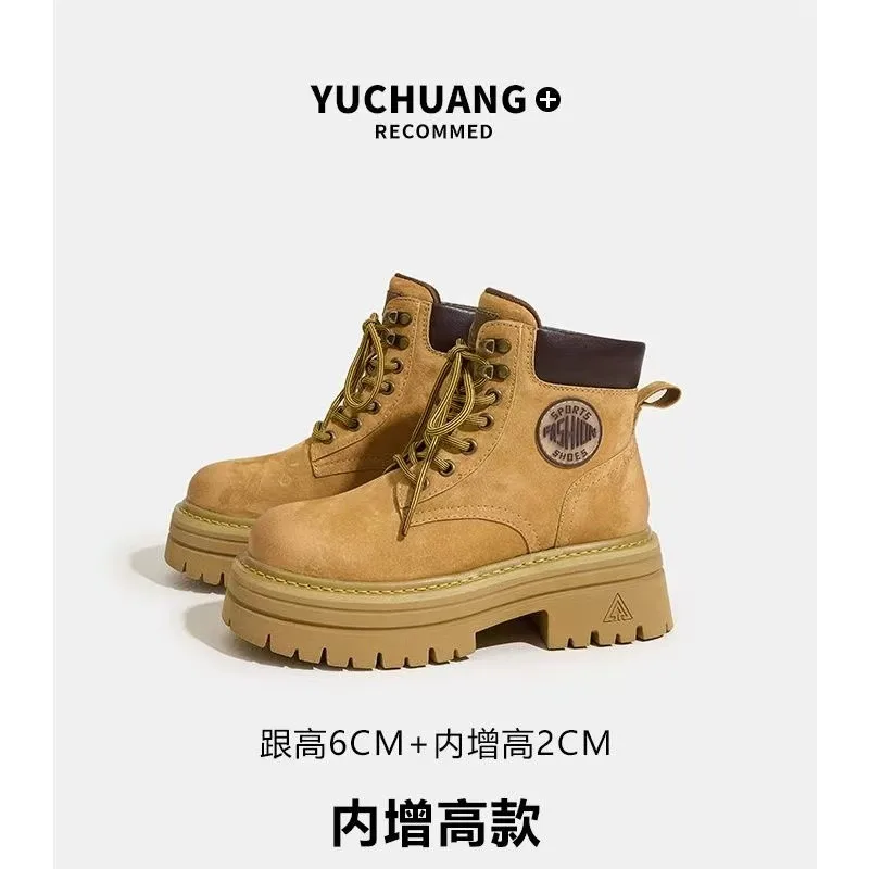 2026 Winter Short Tube Mid Heel (3-5cm) Round Toe Microfiber Square Heel Boots
