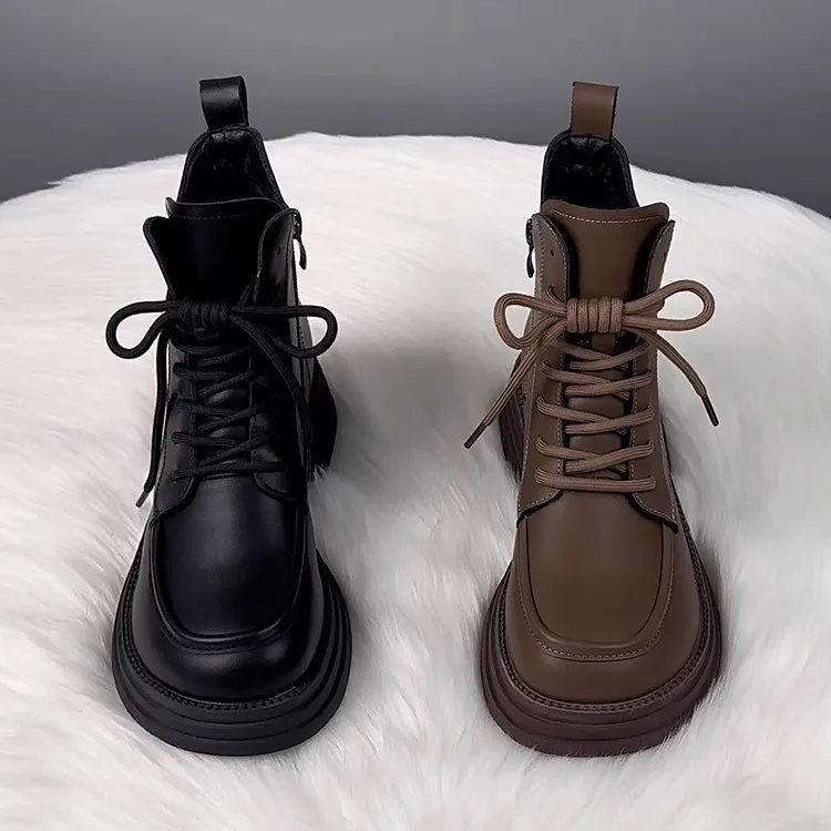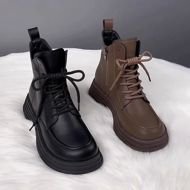2026 Winter Low Heel (Less Than 3cm) Short Tube Side Zipper Round Toe Platform Sole Boots