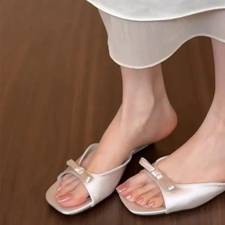 2026 Summer Elegant Lady Satin Fairy Style Mom Slippers Foreign Trade Hot Selling Women's Shoes