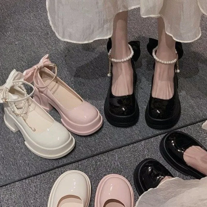 Japanese Style Mixed Colors Square Heel Closed Toe Mary Jane Pumps Women PU Shoes High Beauty Value Height Increase