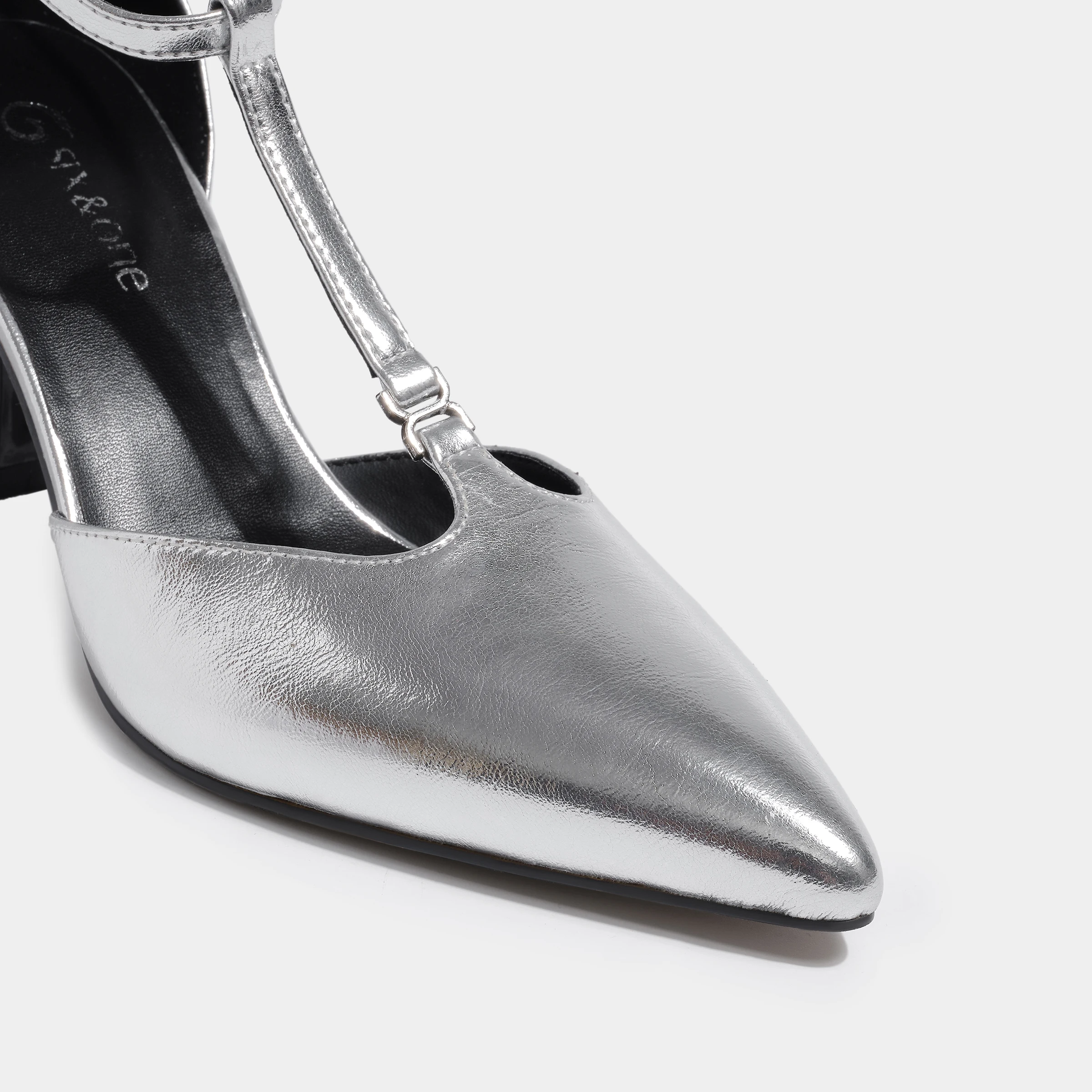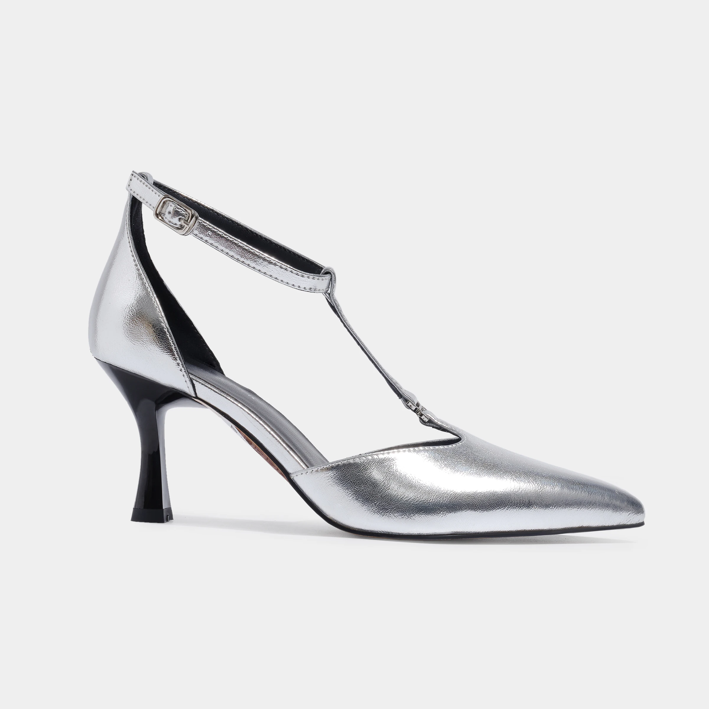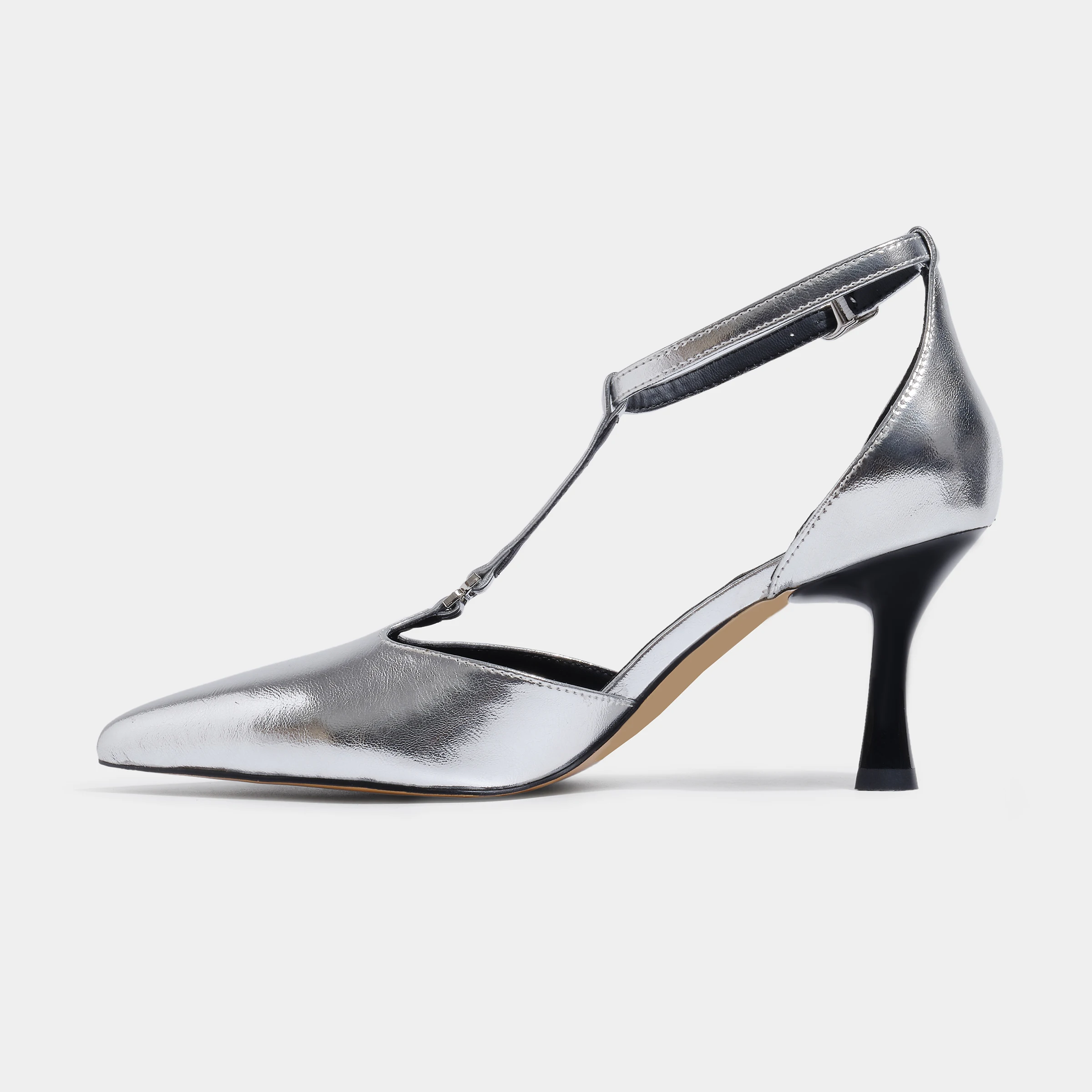 Chic Silver T-Strap Stiletto Pumps Pointed-Toe Party Shoes with Thin Heels for Summer and Autumn Fashion