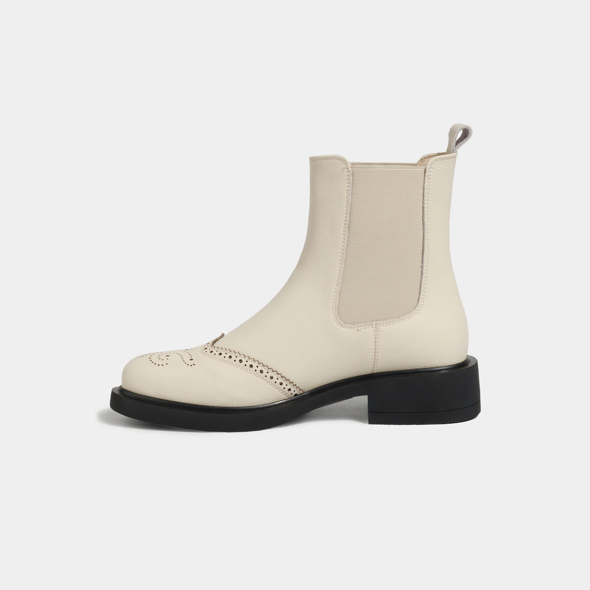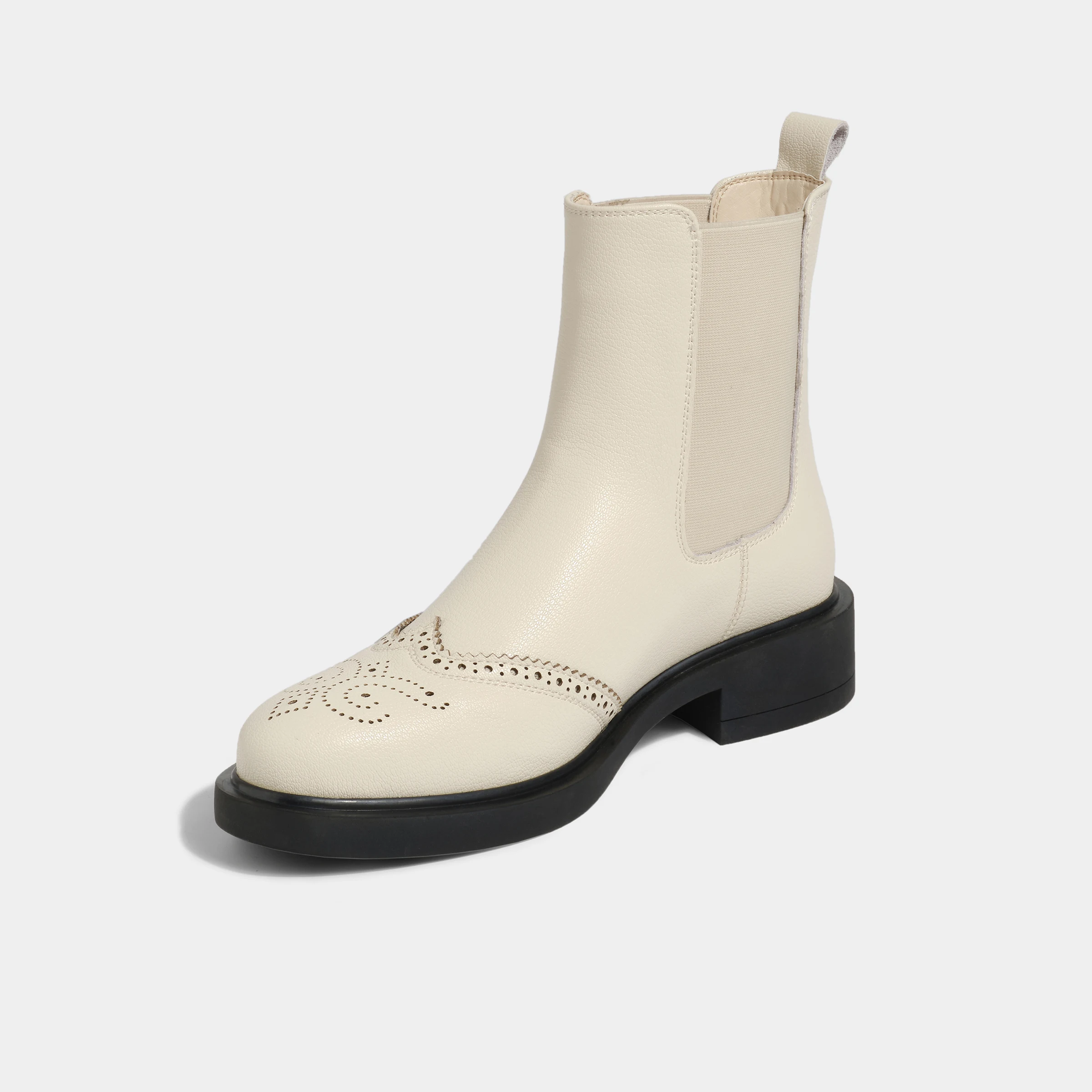Vintage Comfort Ankle Boots Brogue Detailing Chelsea Booties Elastic Gusset Contrast Panel Classic Retro Fashion for Autumn