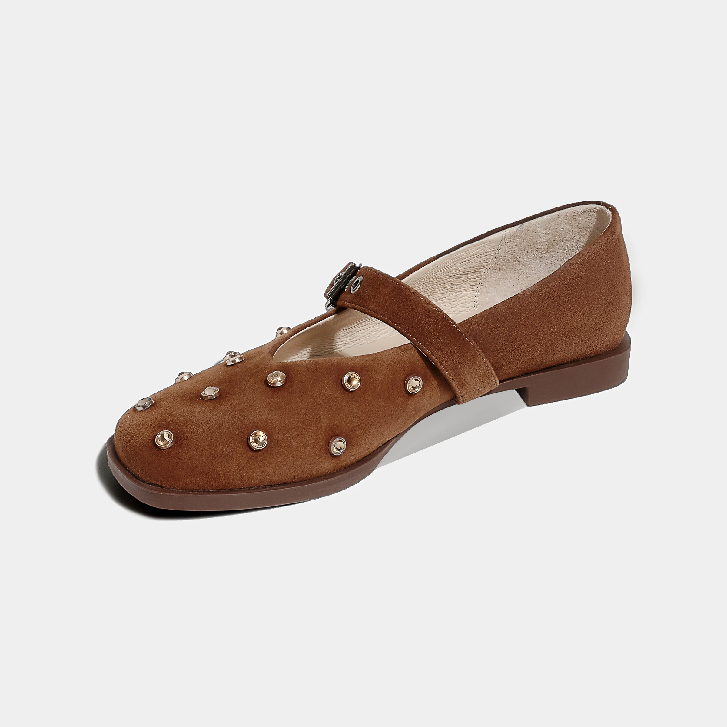 Women's Rhinestone-Embellished Suede Ballet Flats Fashion Trend Sparkly Flat Pumps for Elegant Occasions with Breathability