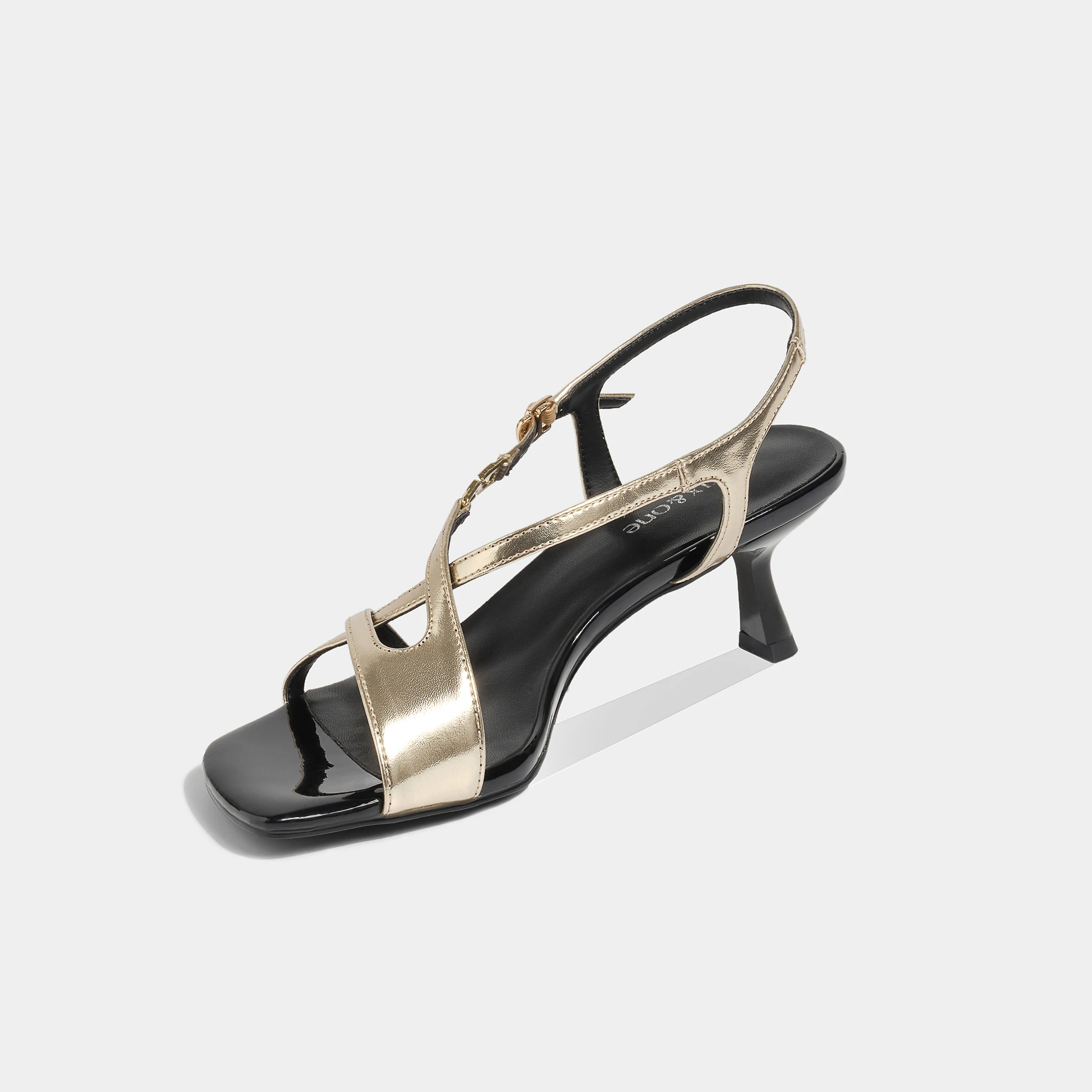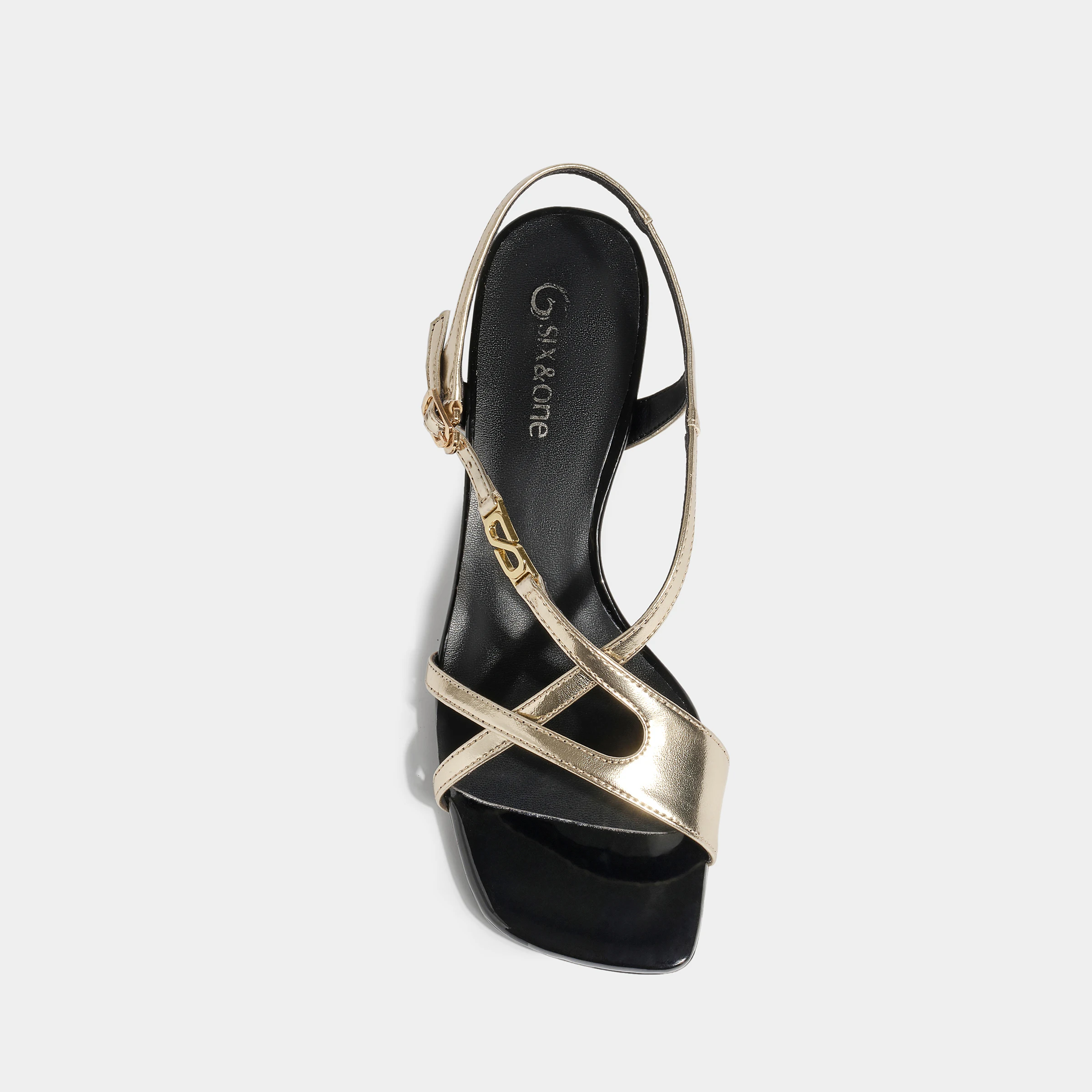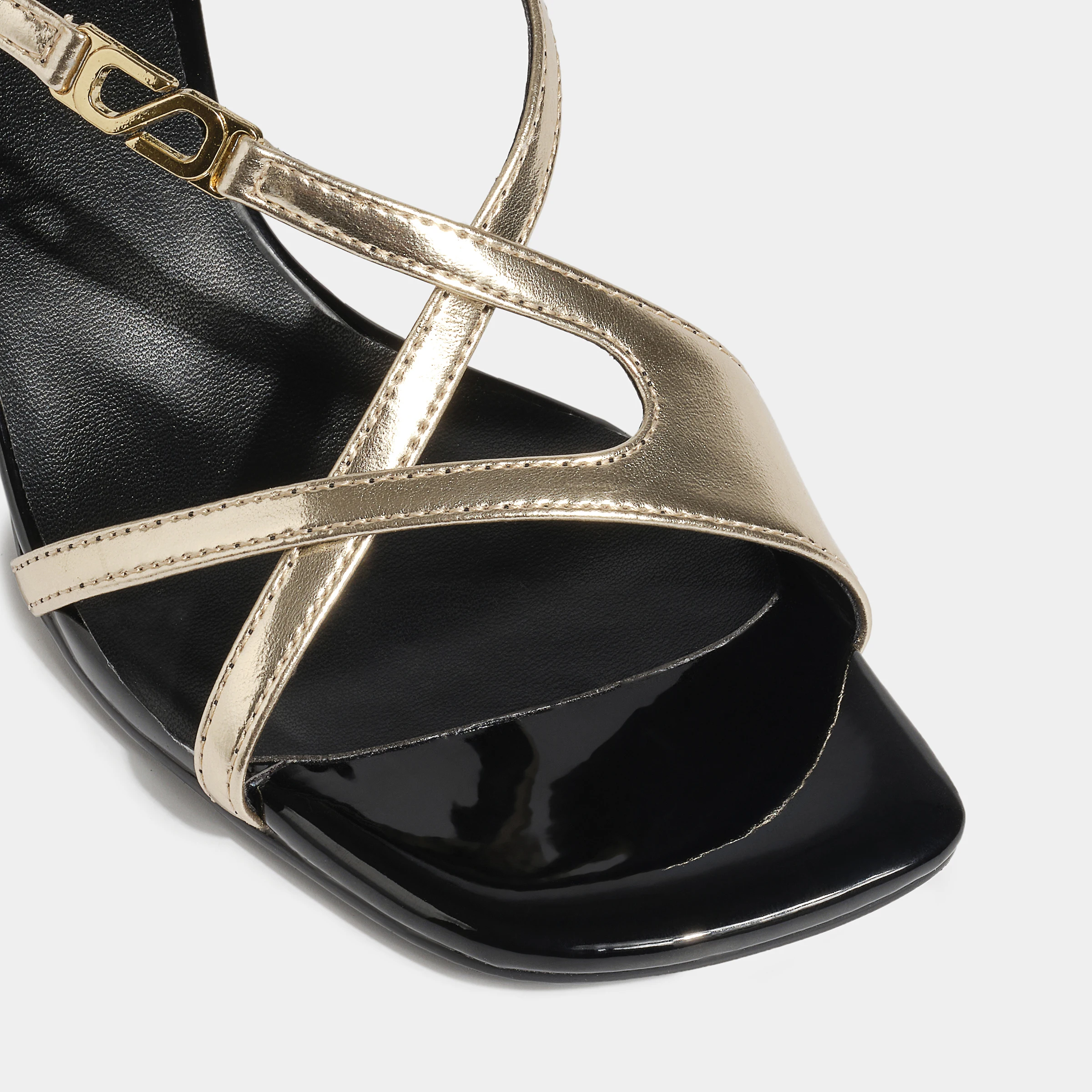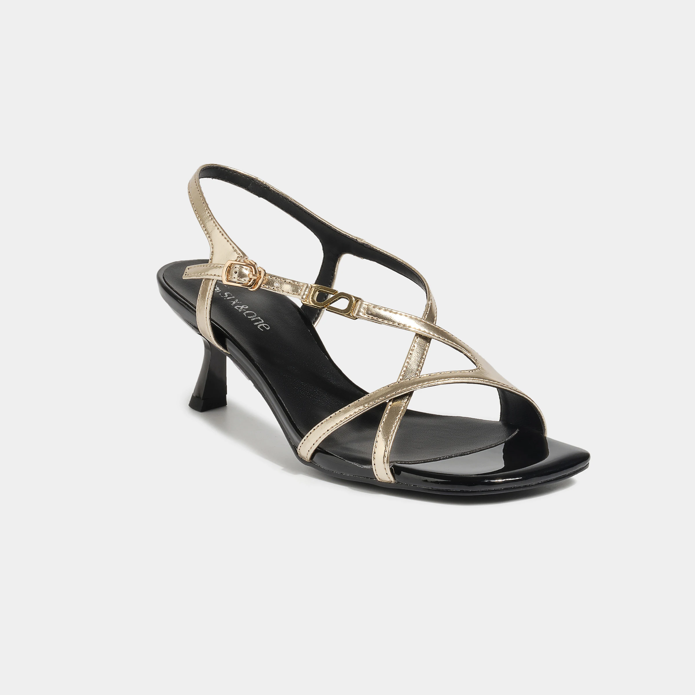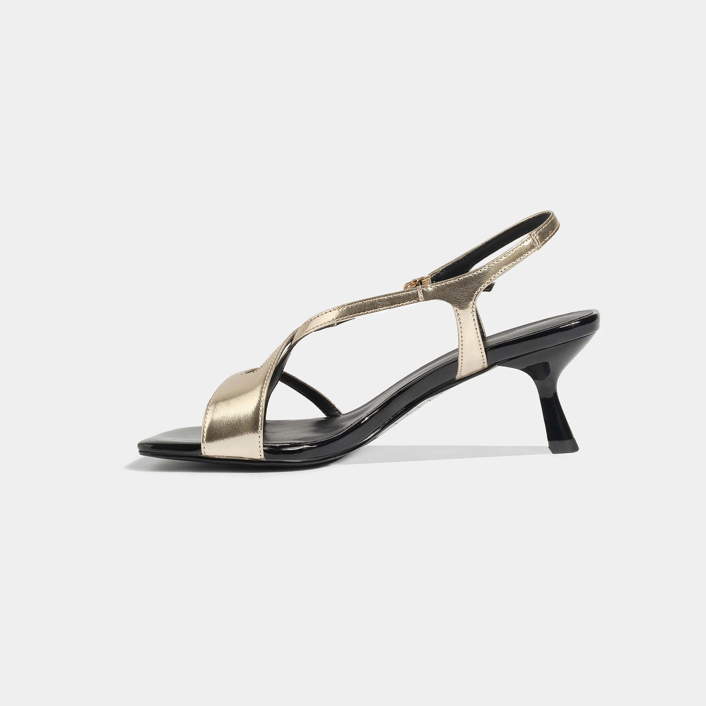 Women's Metallic Gold Kitten Heel Stiletto Sandals Summer Sexy Crisscross Strap Buckle Closure Light Weight Square Toe Club
