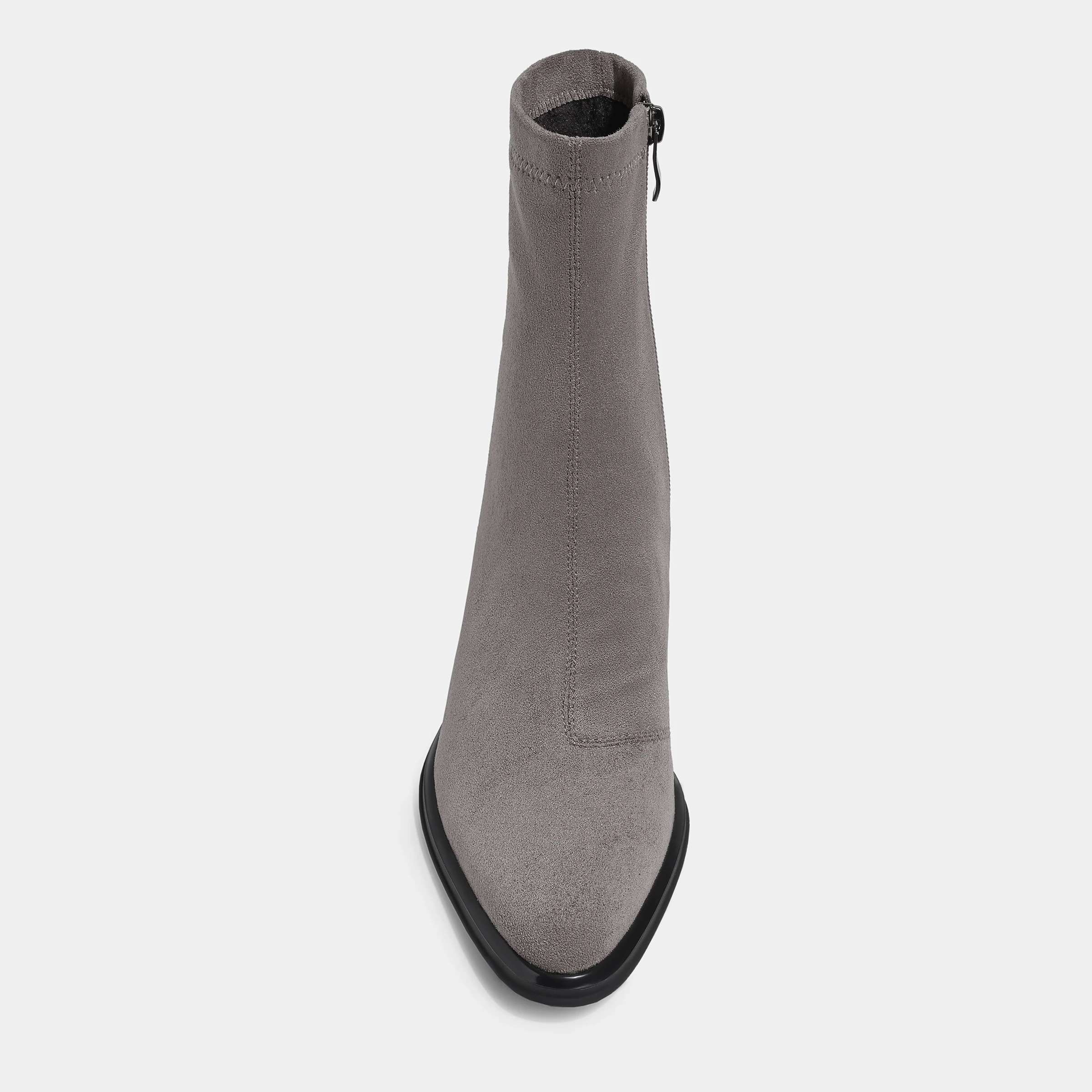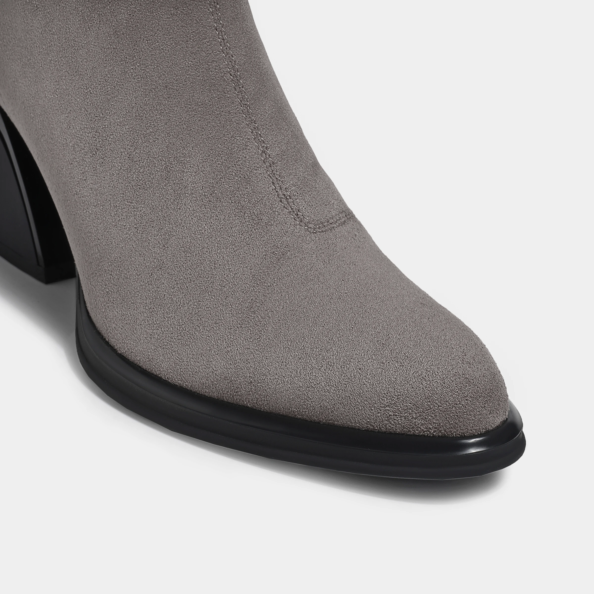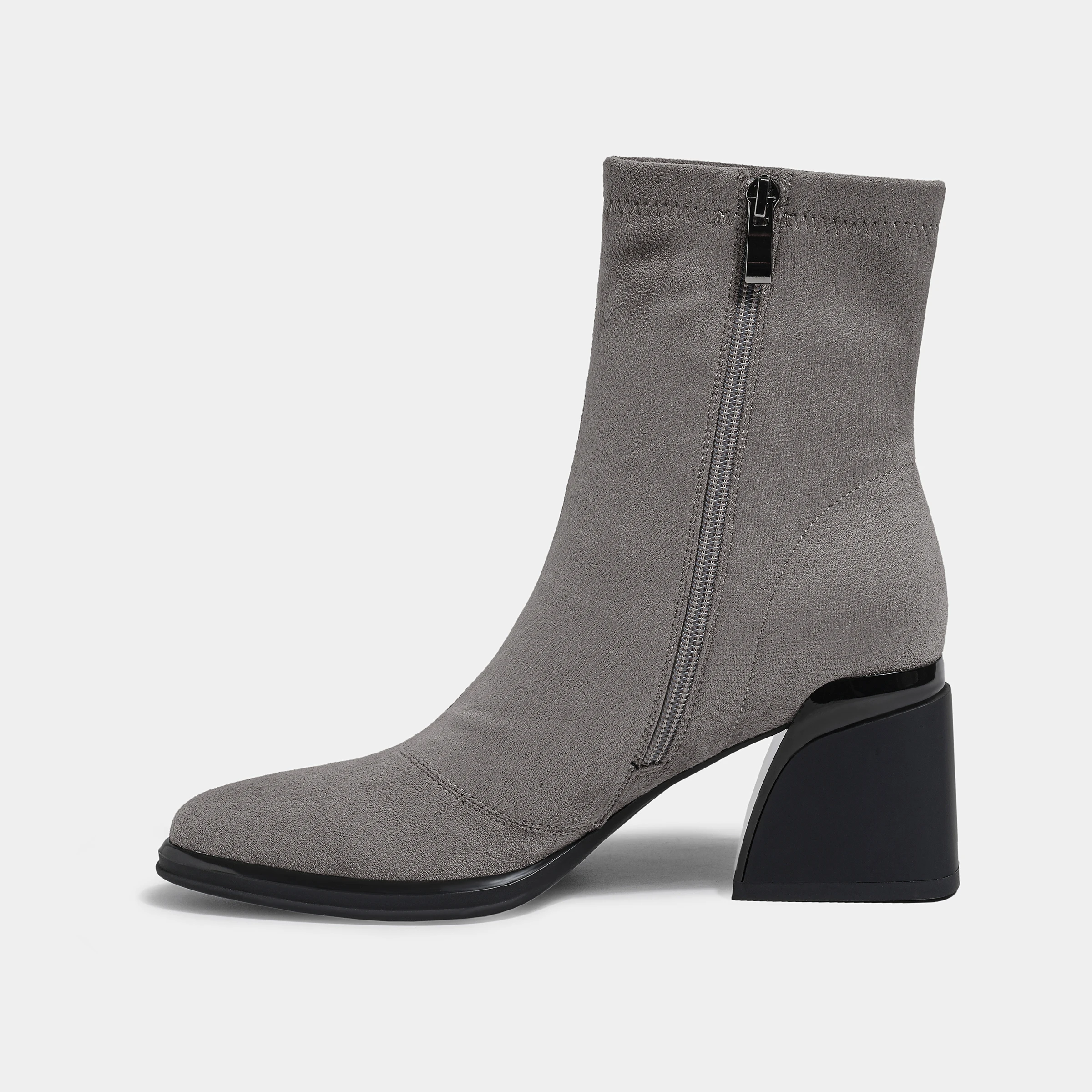Autumn Grey Suede Formal Square-Toe Ankle Boots with Zip Closure and Square Heel Chic & Stylish Bootie Design