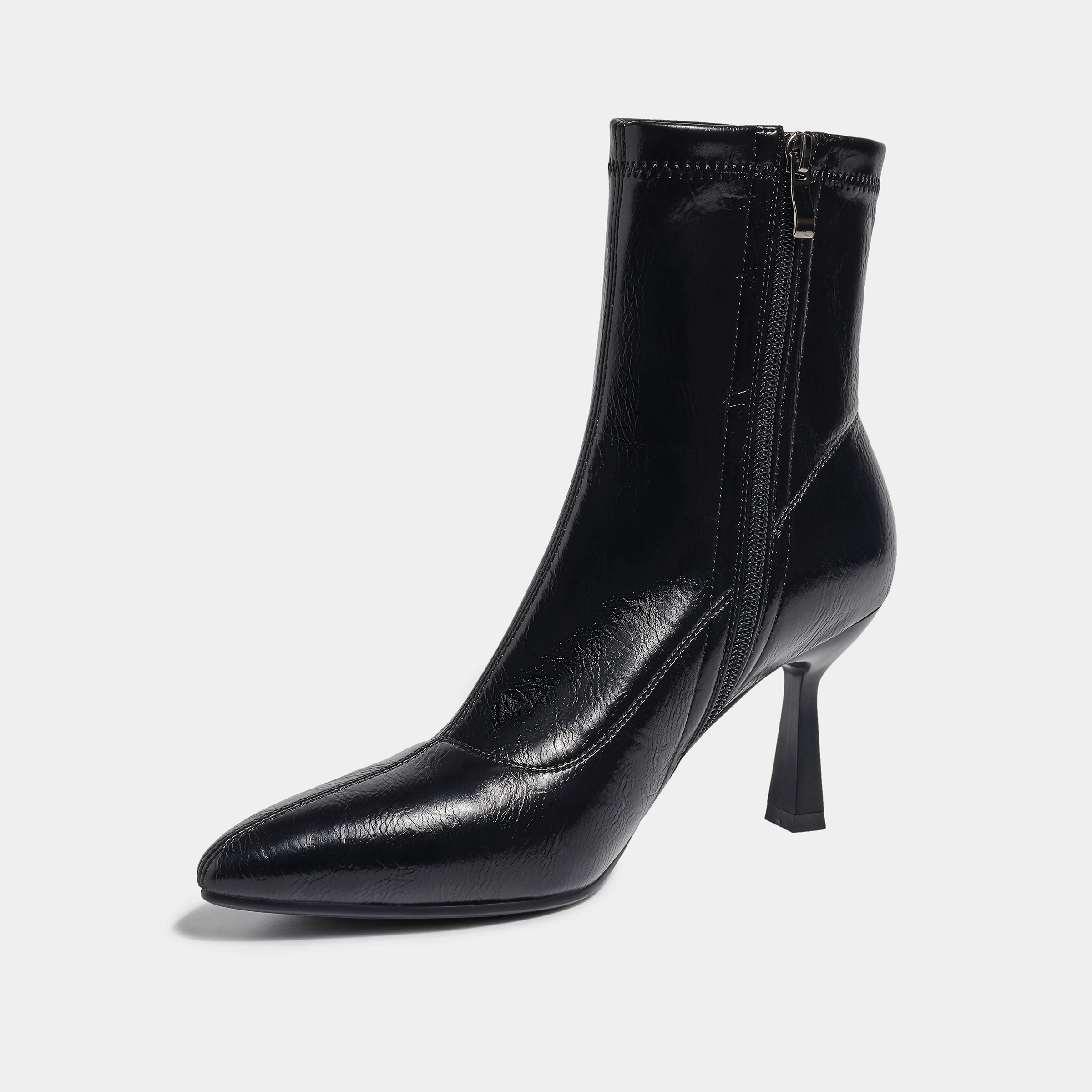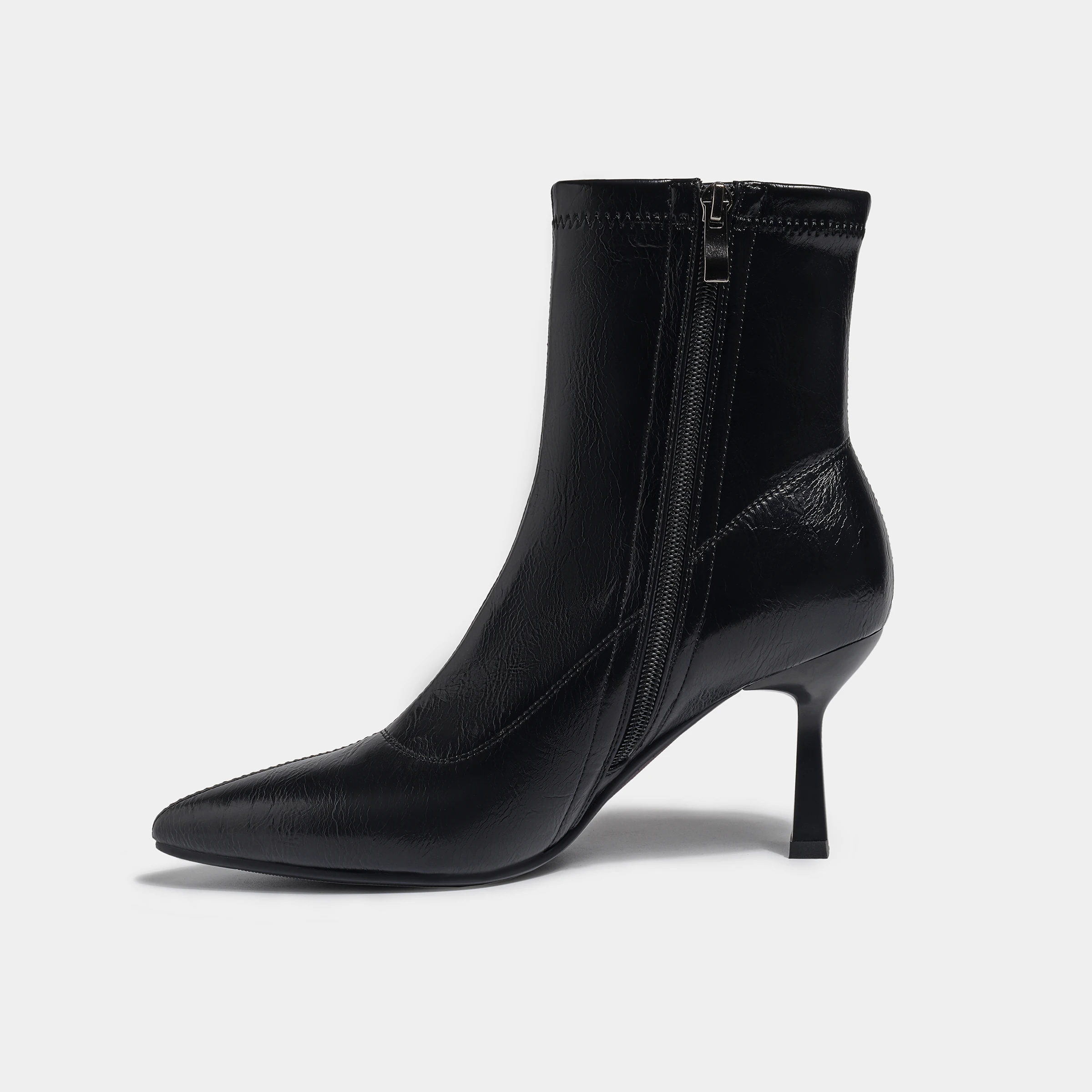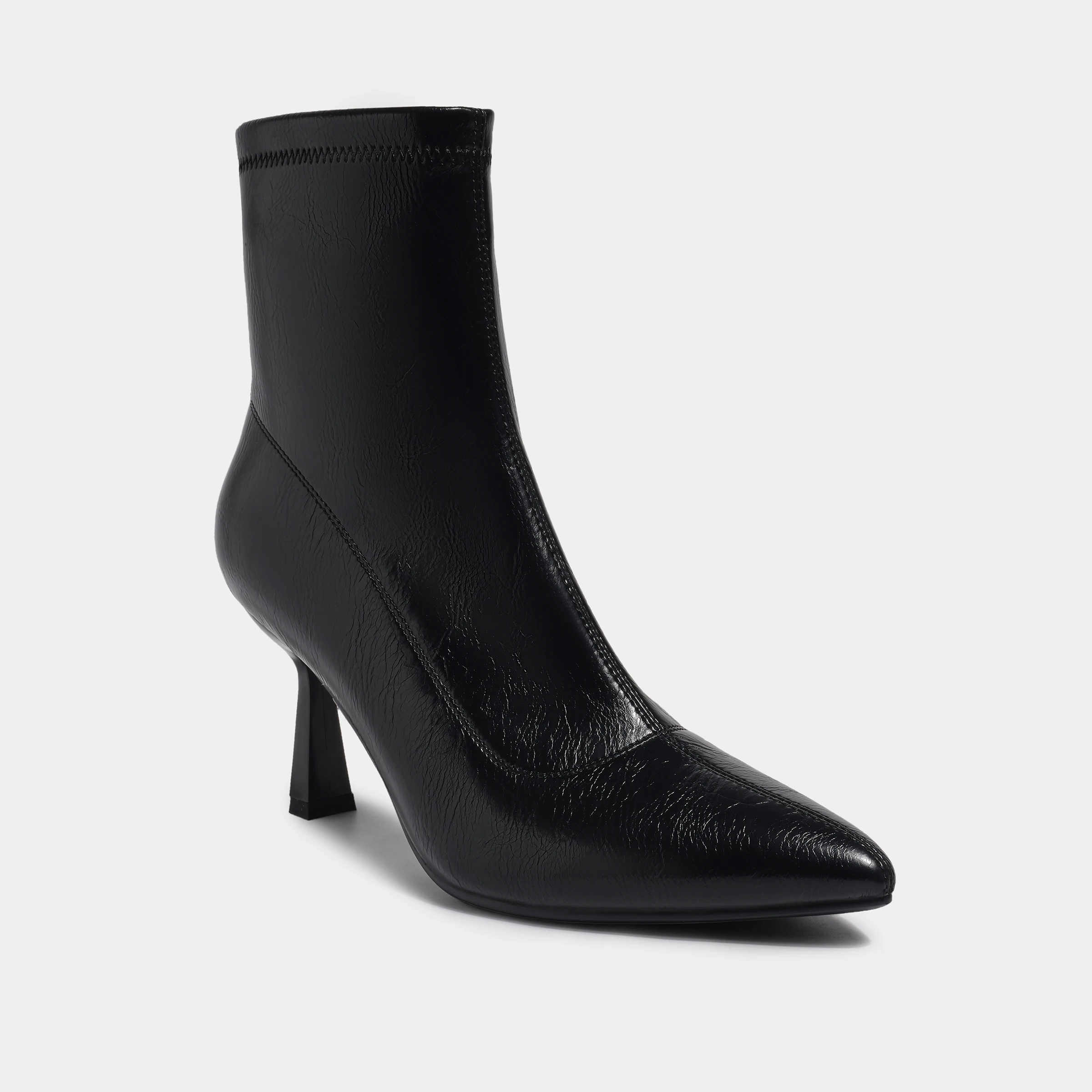 Black PU Pointed-Toe Stiletto Ankle Boots Sleek Design Comfortable Heel Height Increasing Fashion Formal