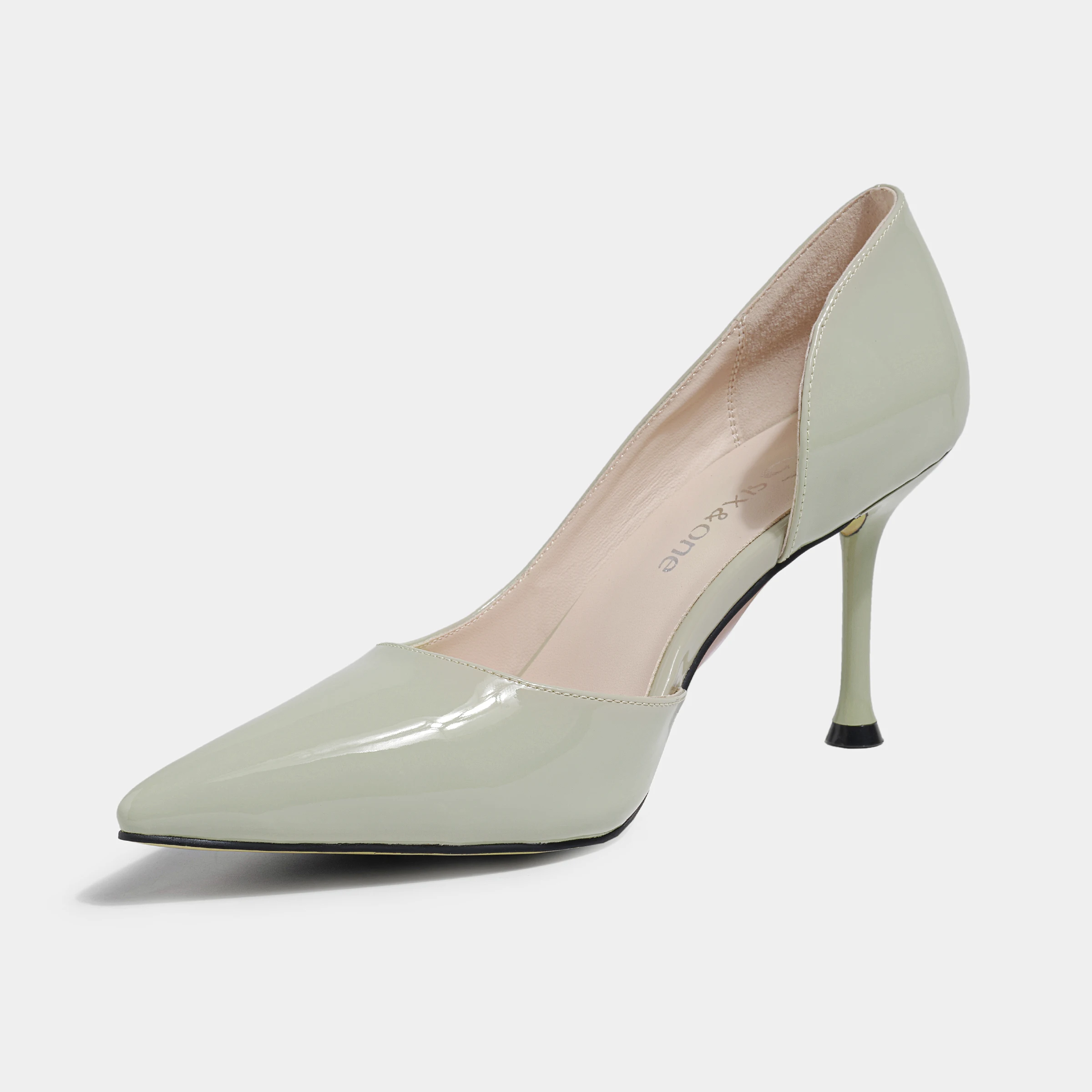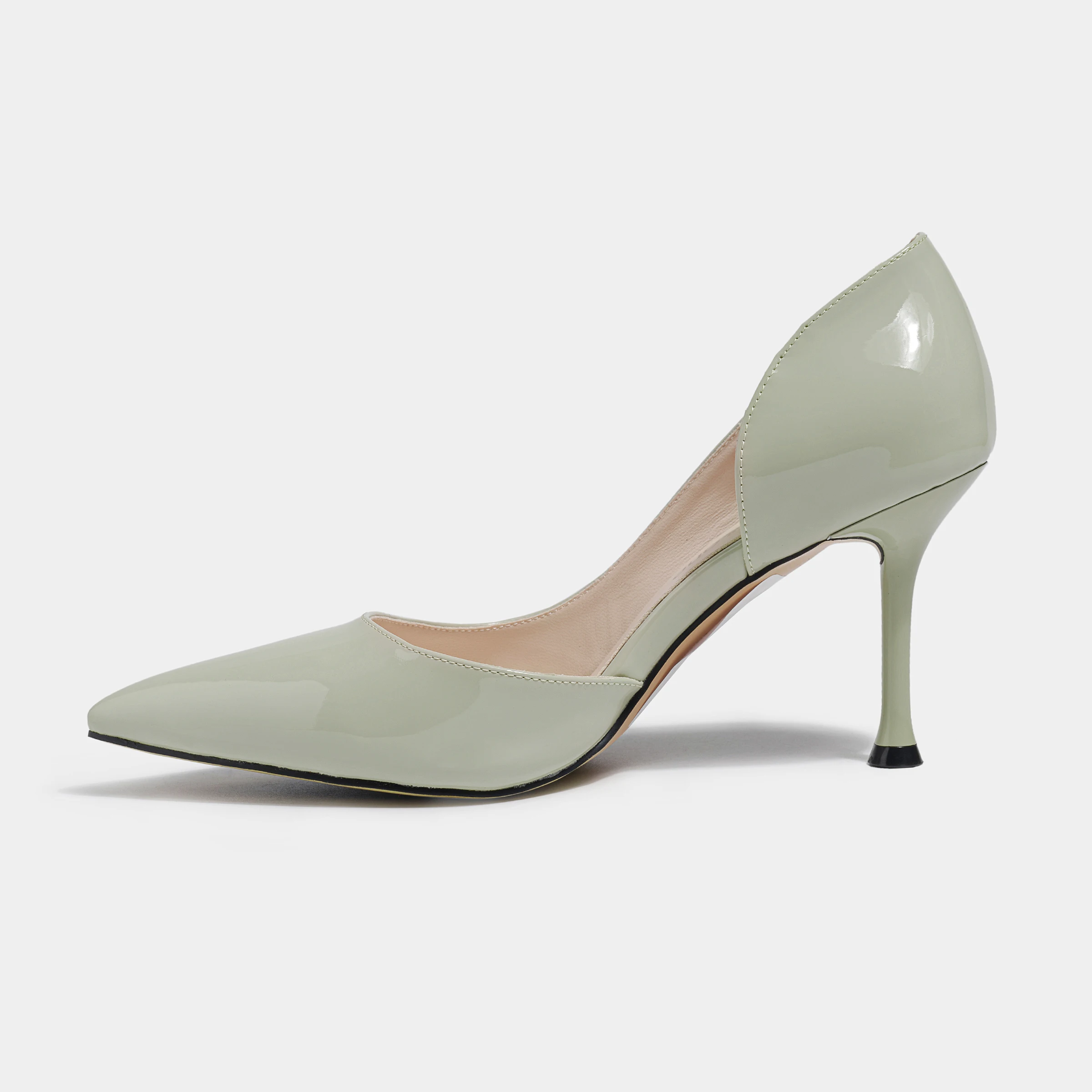 Light Beige Leather Stiletto Pumps Chic Design with Side Cutout Pointed Toe-for Office & Evening Events