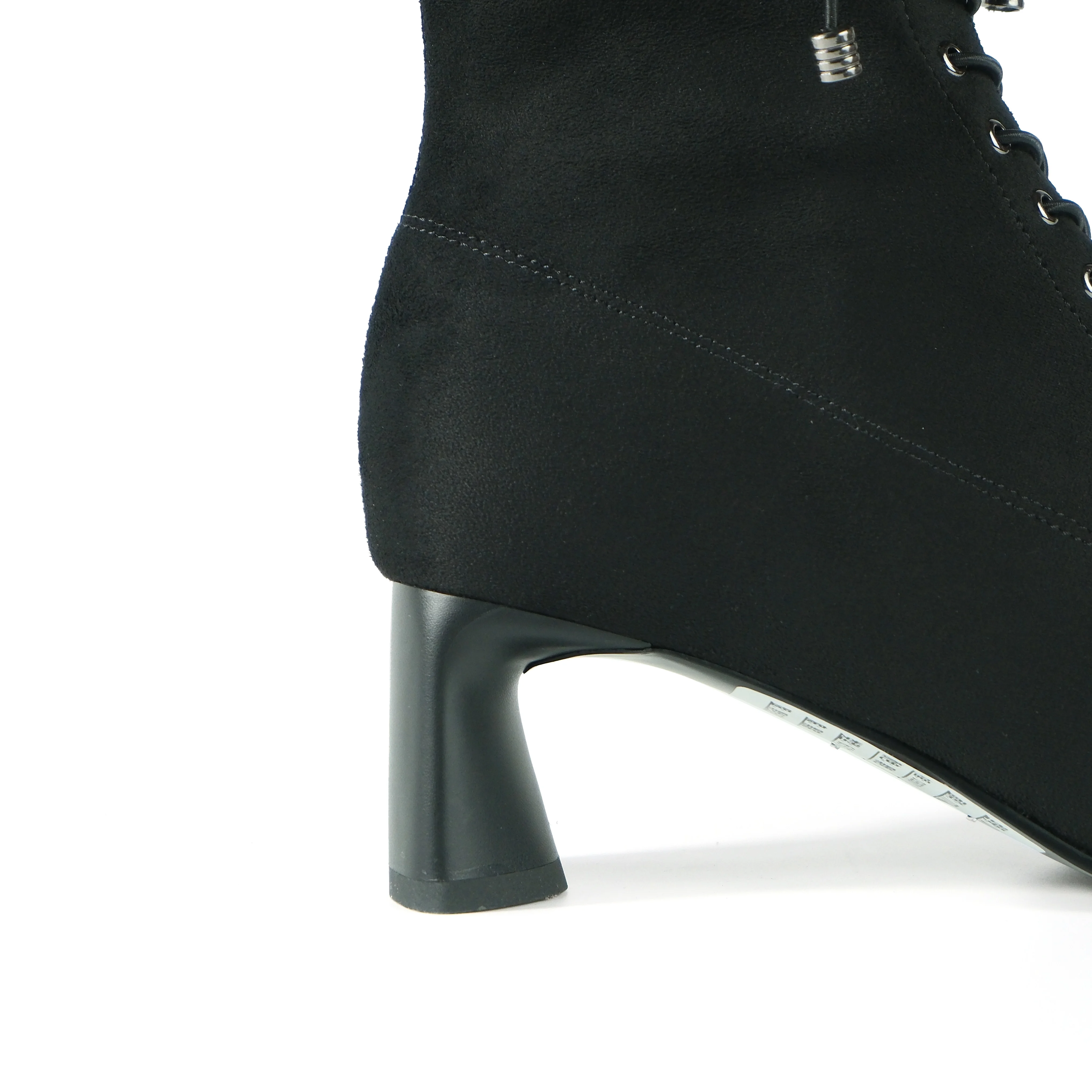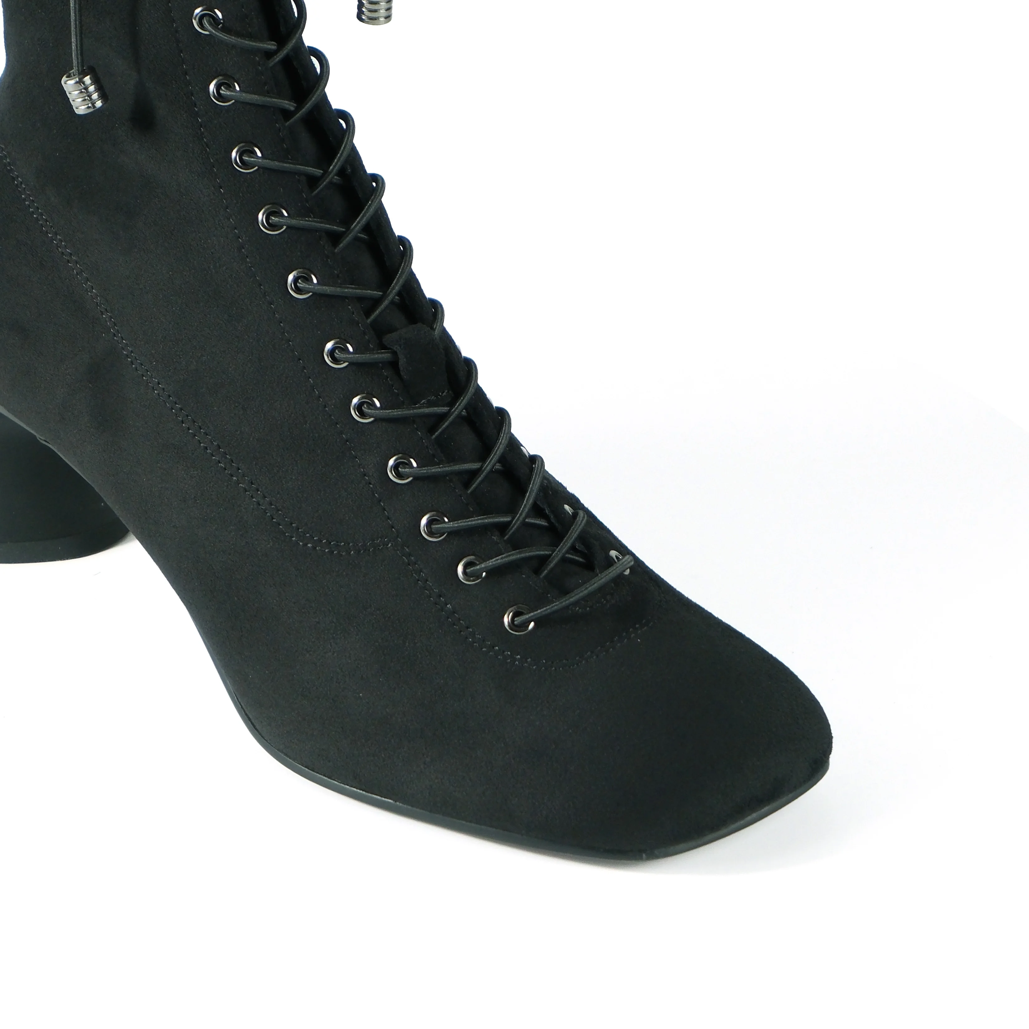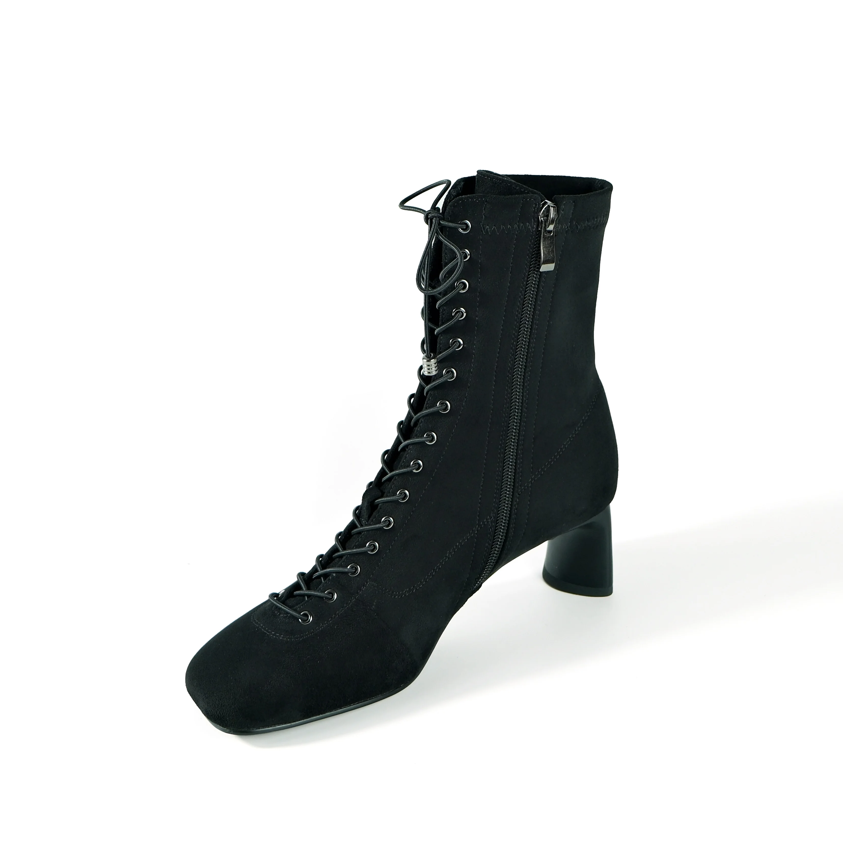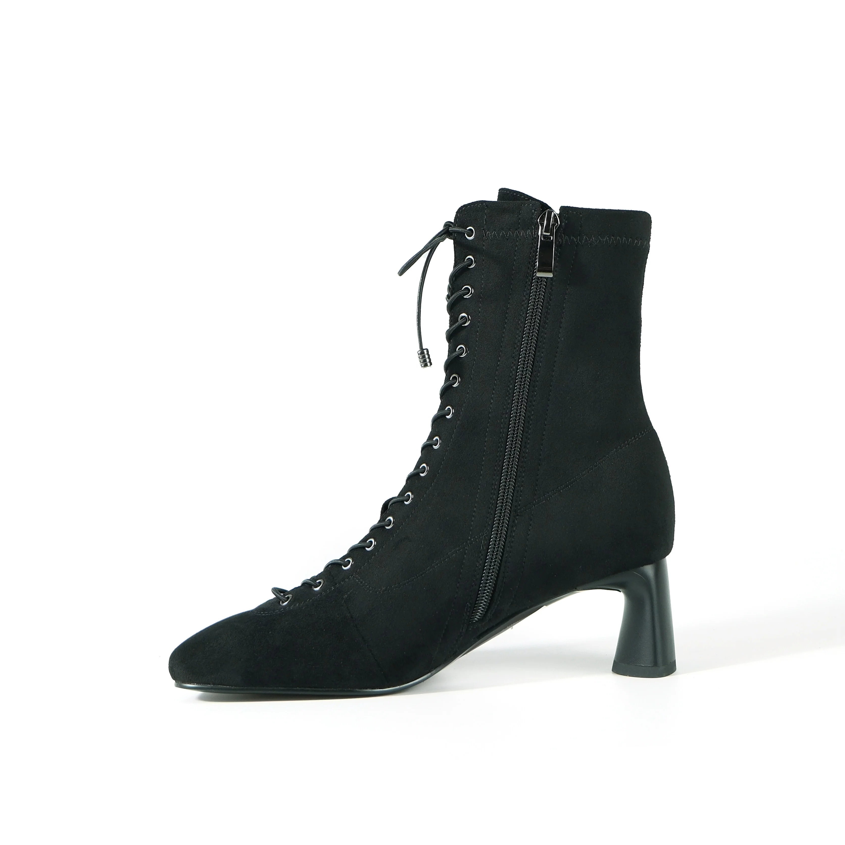 Mixed Square Toe Ankle Boots Fashionable Formal Classic Work Lace-up Chunky Heel Zipper Side Cushioned Velvet Lining for Autumn