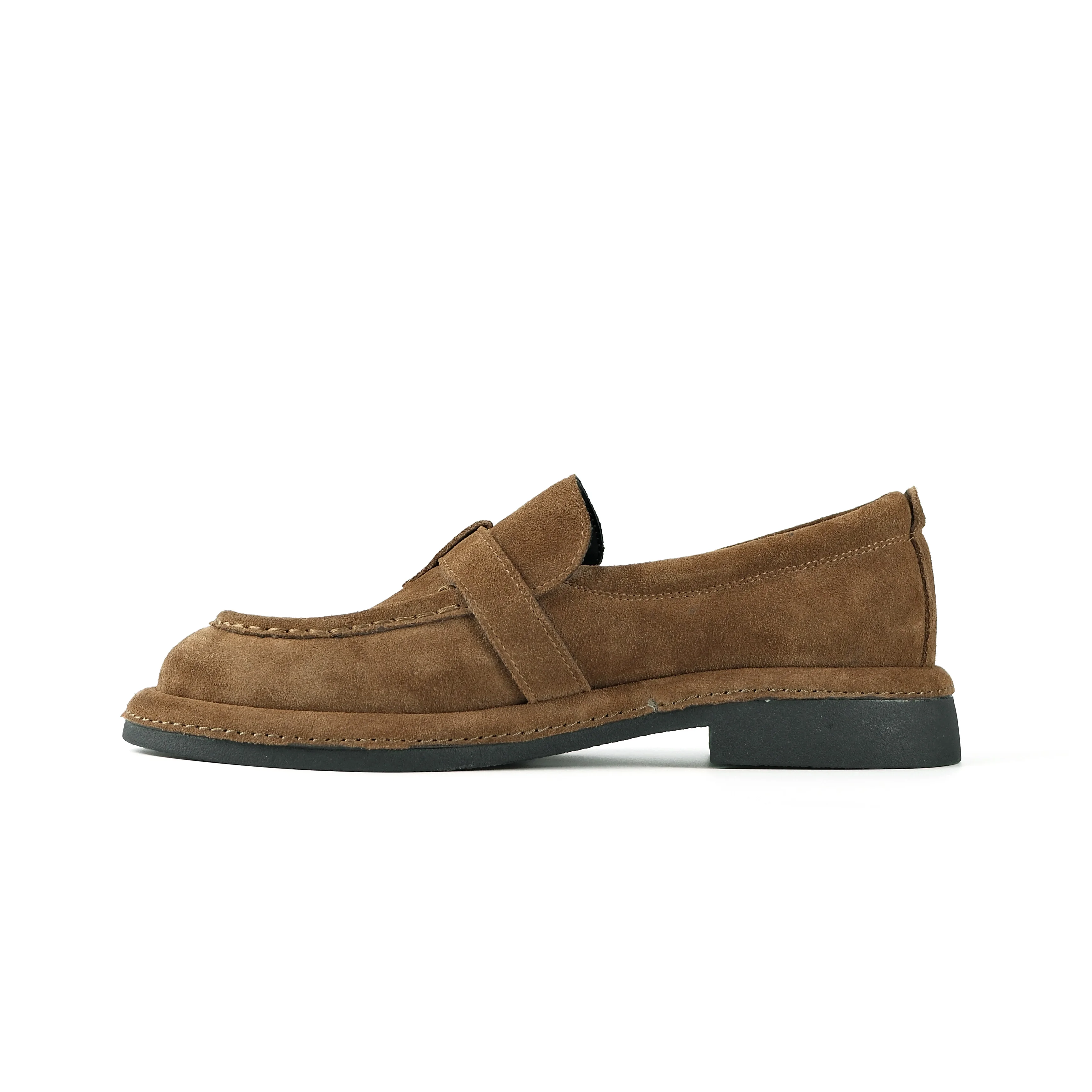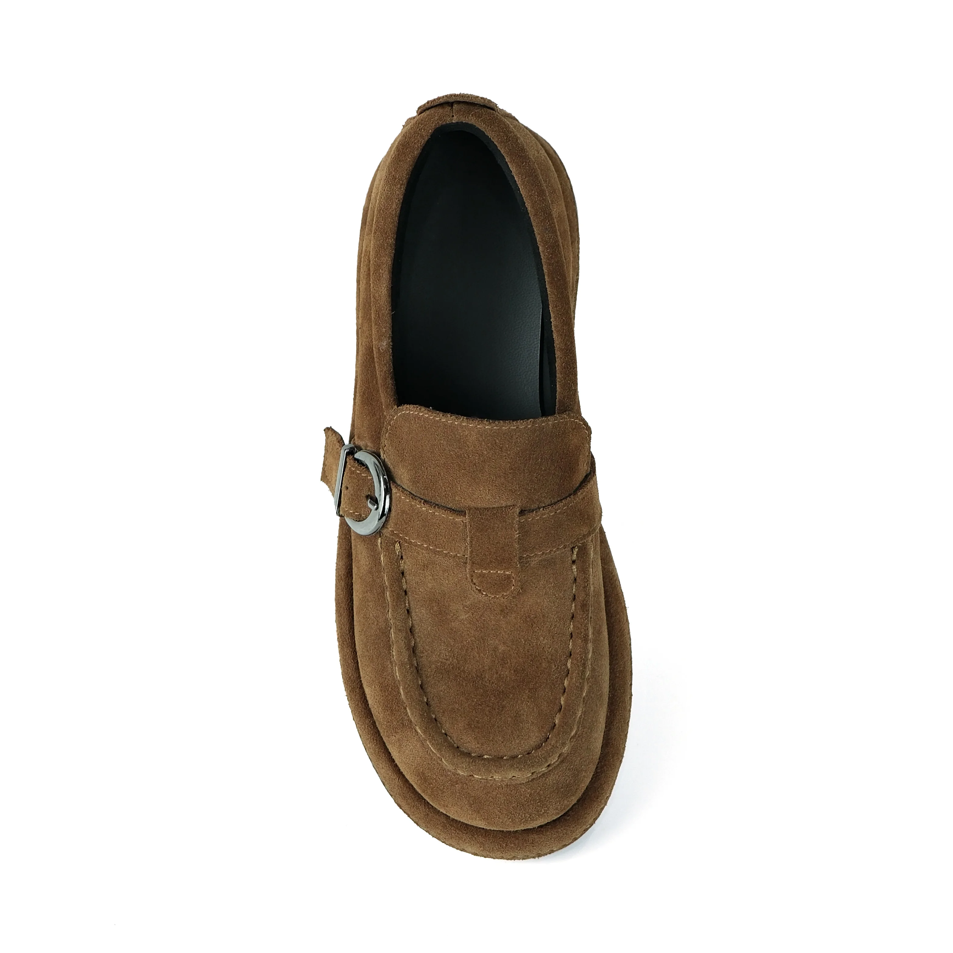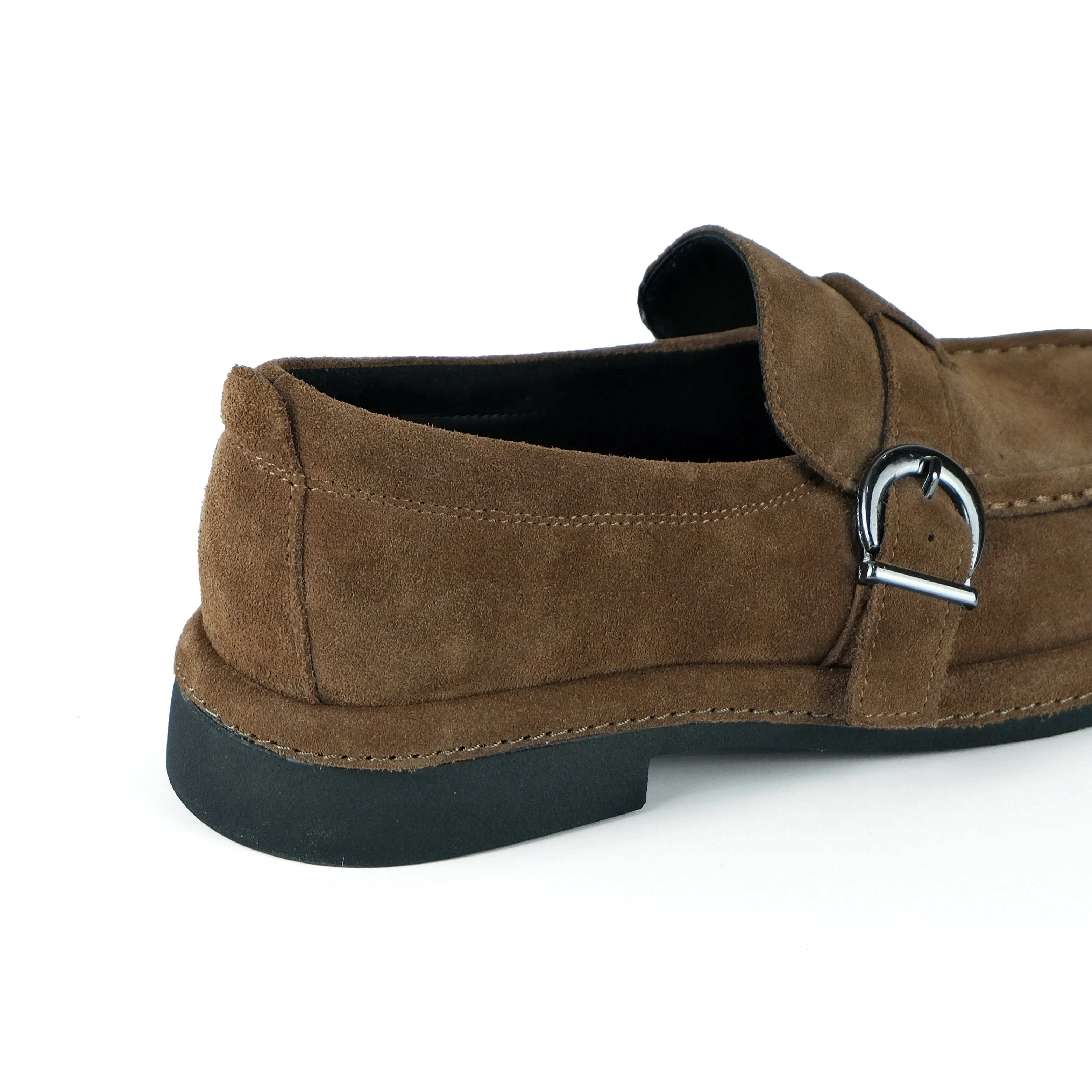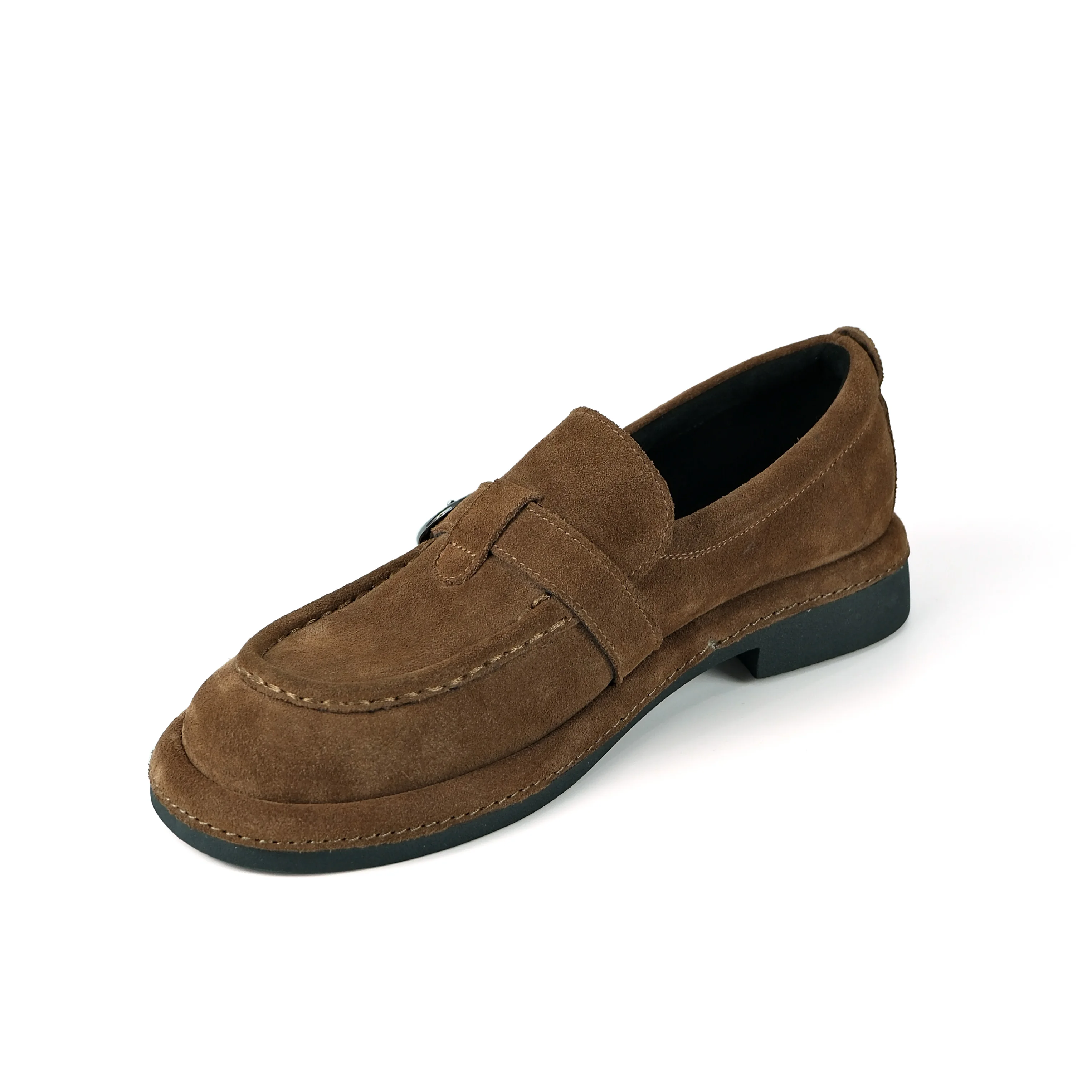 Trendy Brown Suede Loafers with Metal Buckle - Round Toe Casual Penny Loafers for Daily & Office Wear