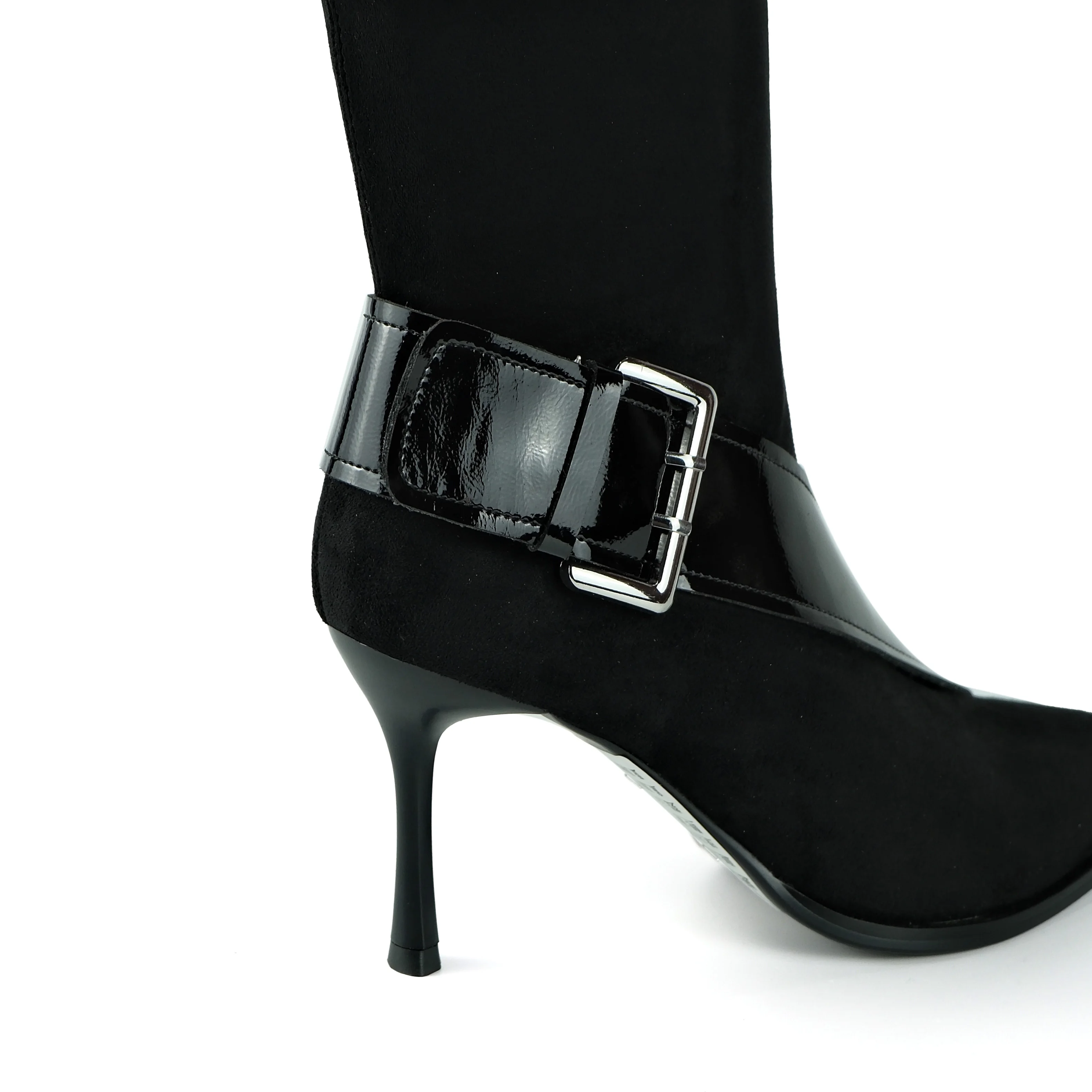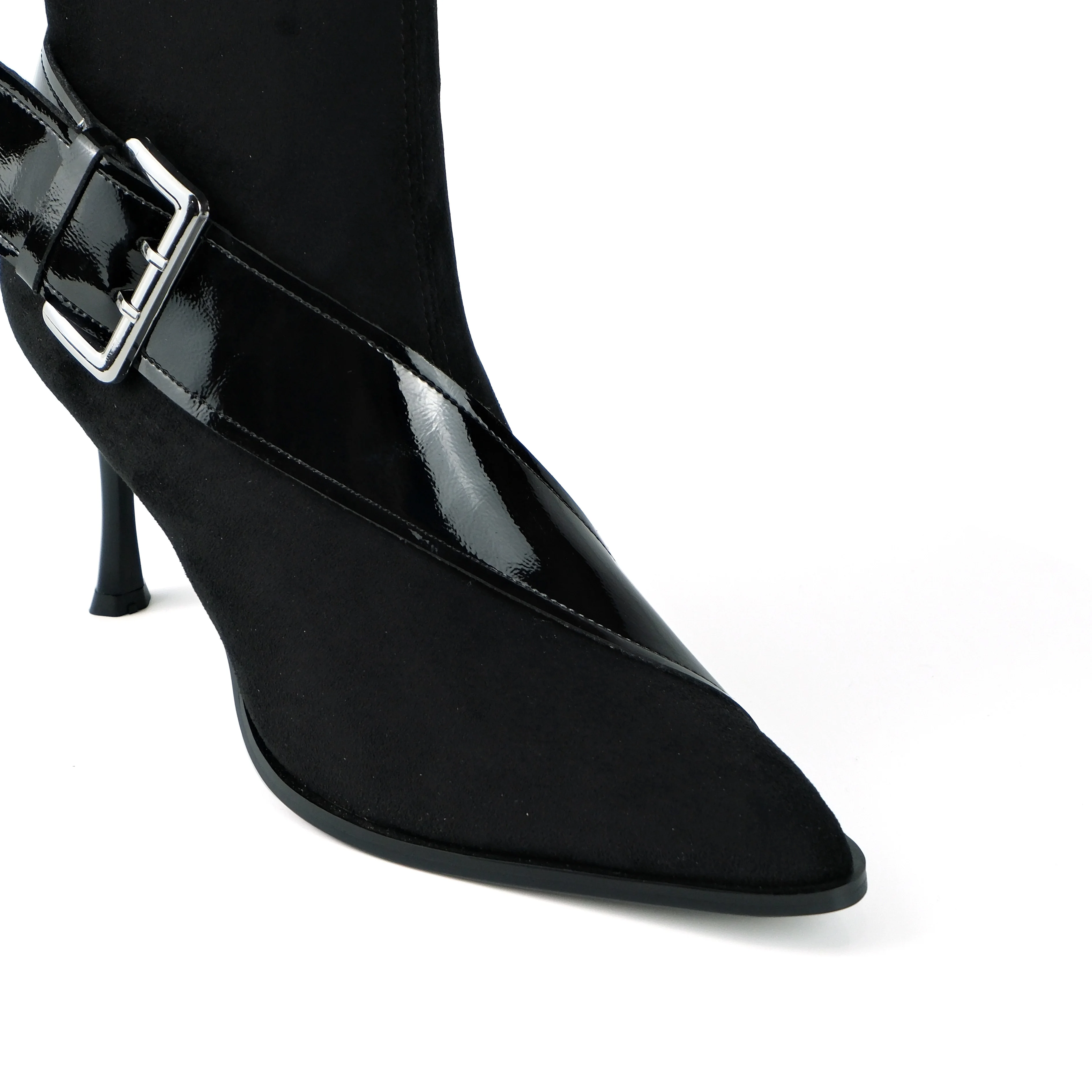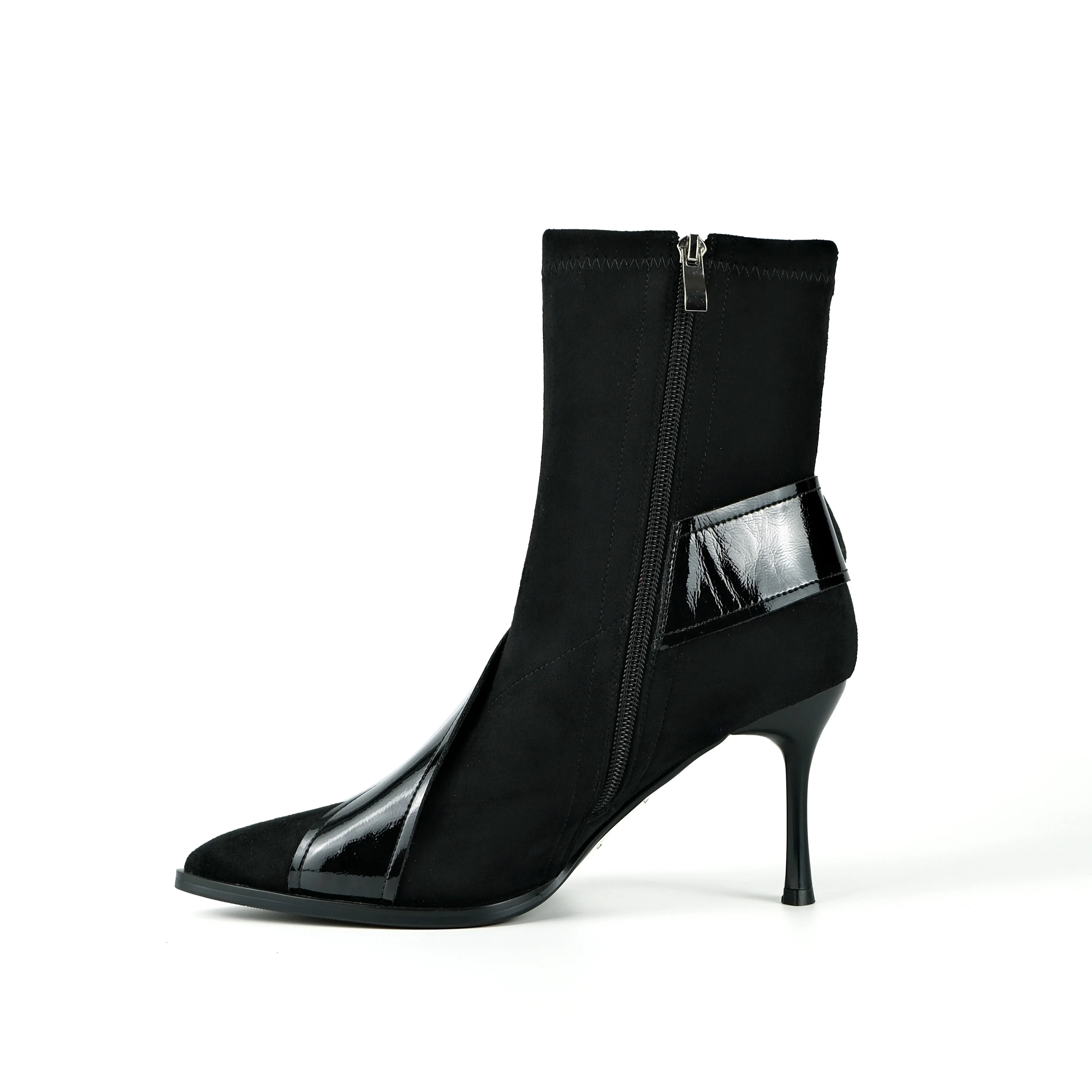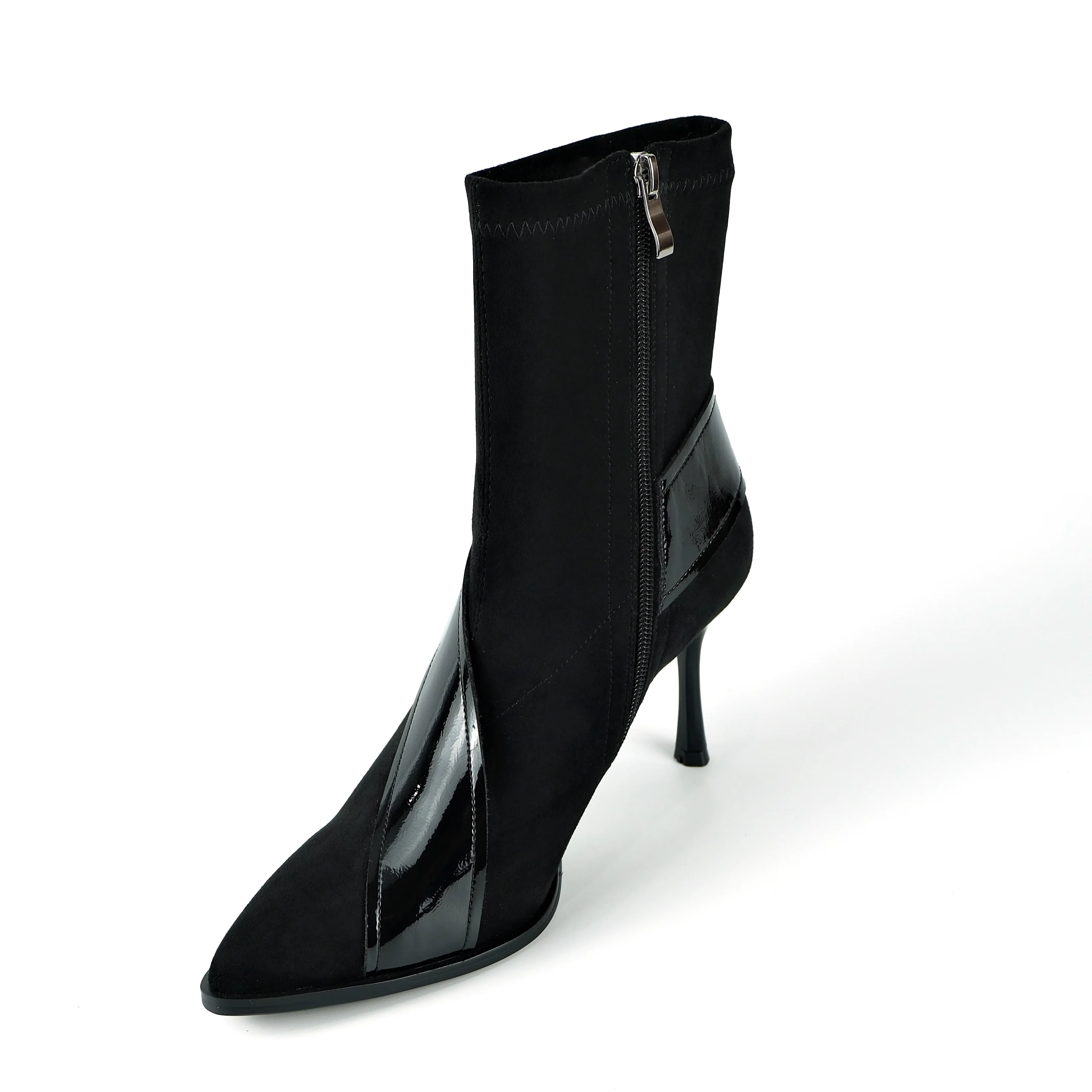Women's Black Faux Suede Ankle Boots - Pointed Toe Stiletto Heel Elastic Fashion Booties