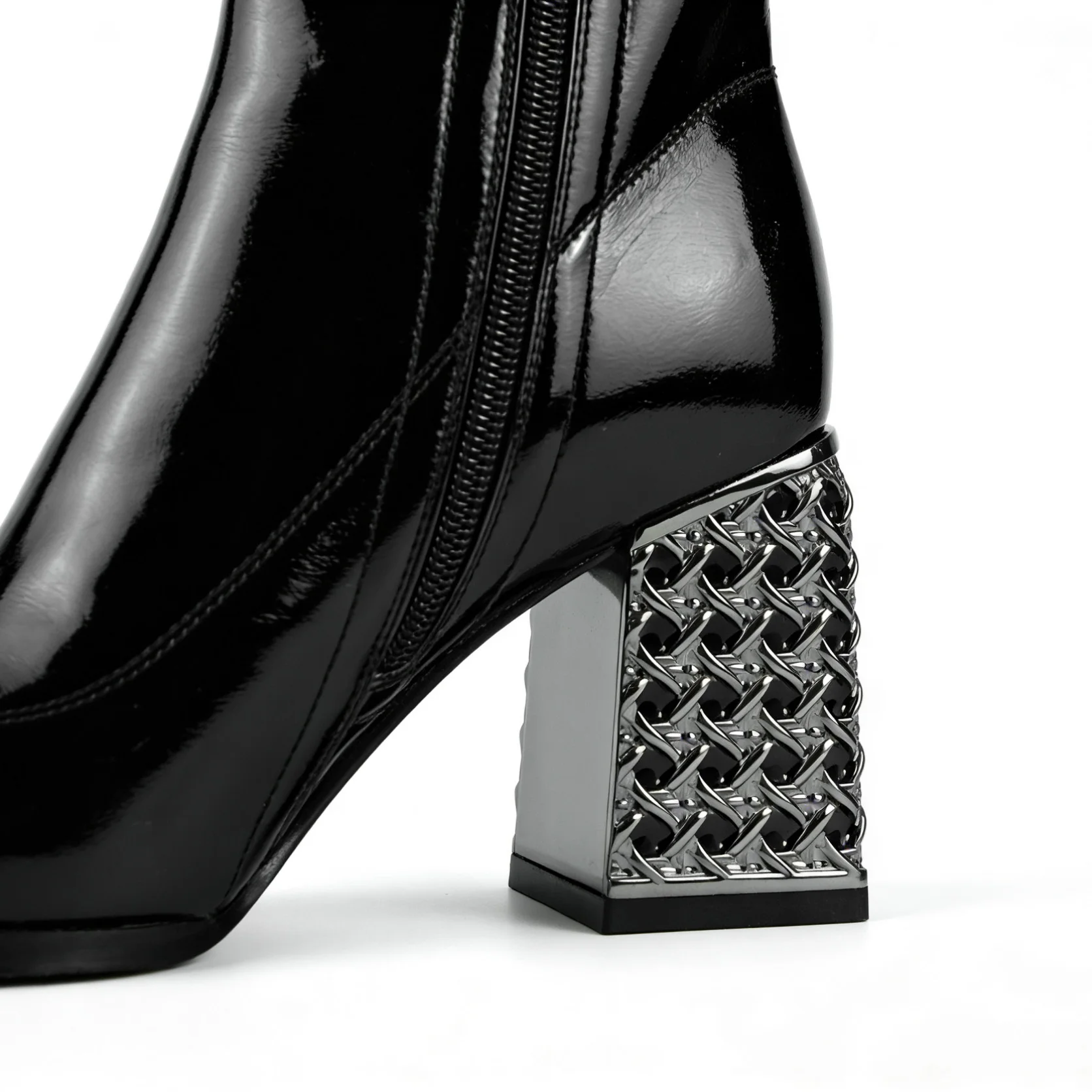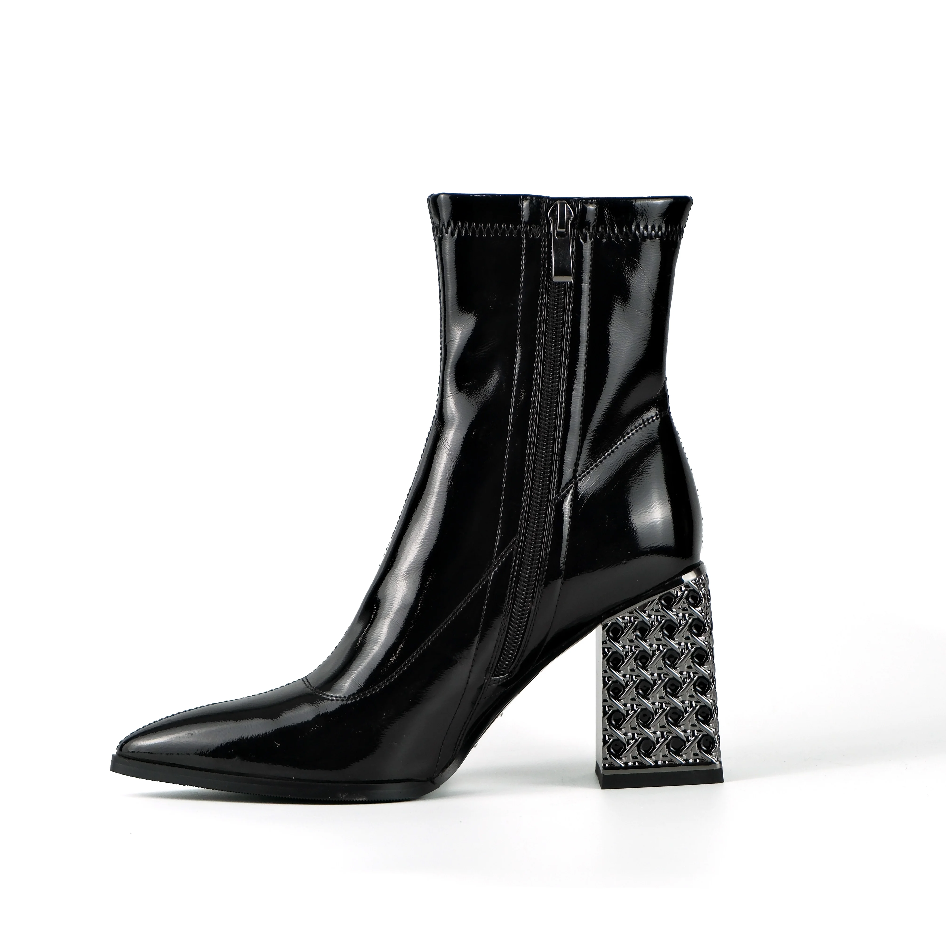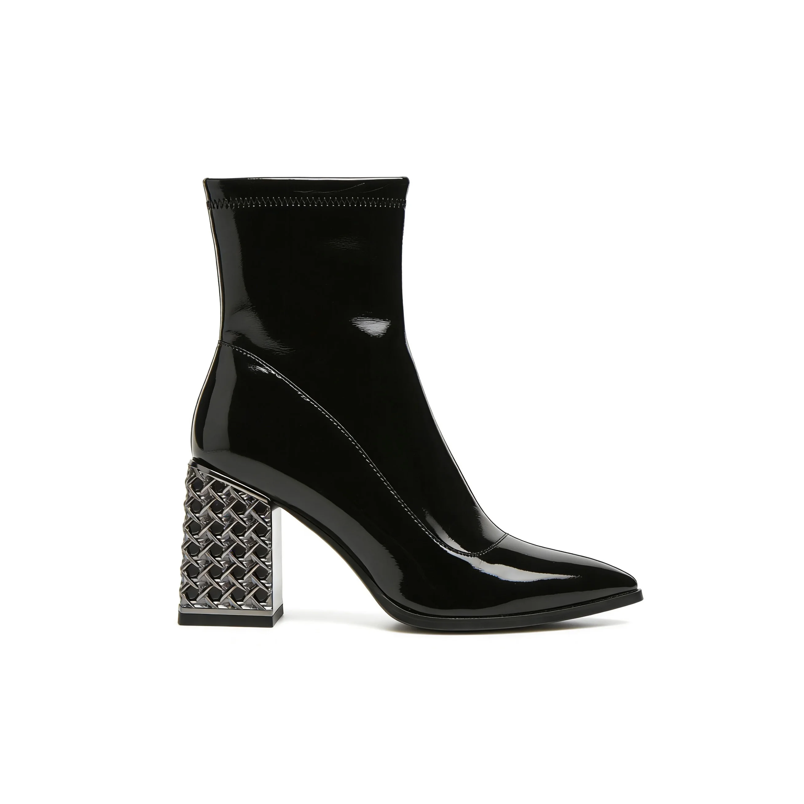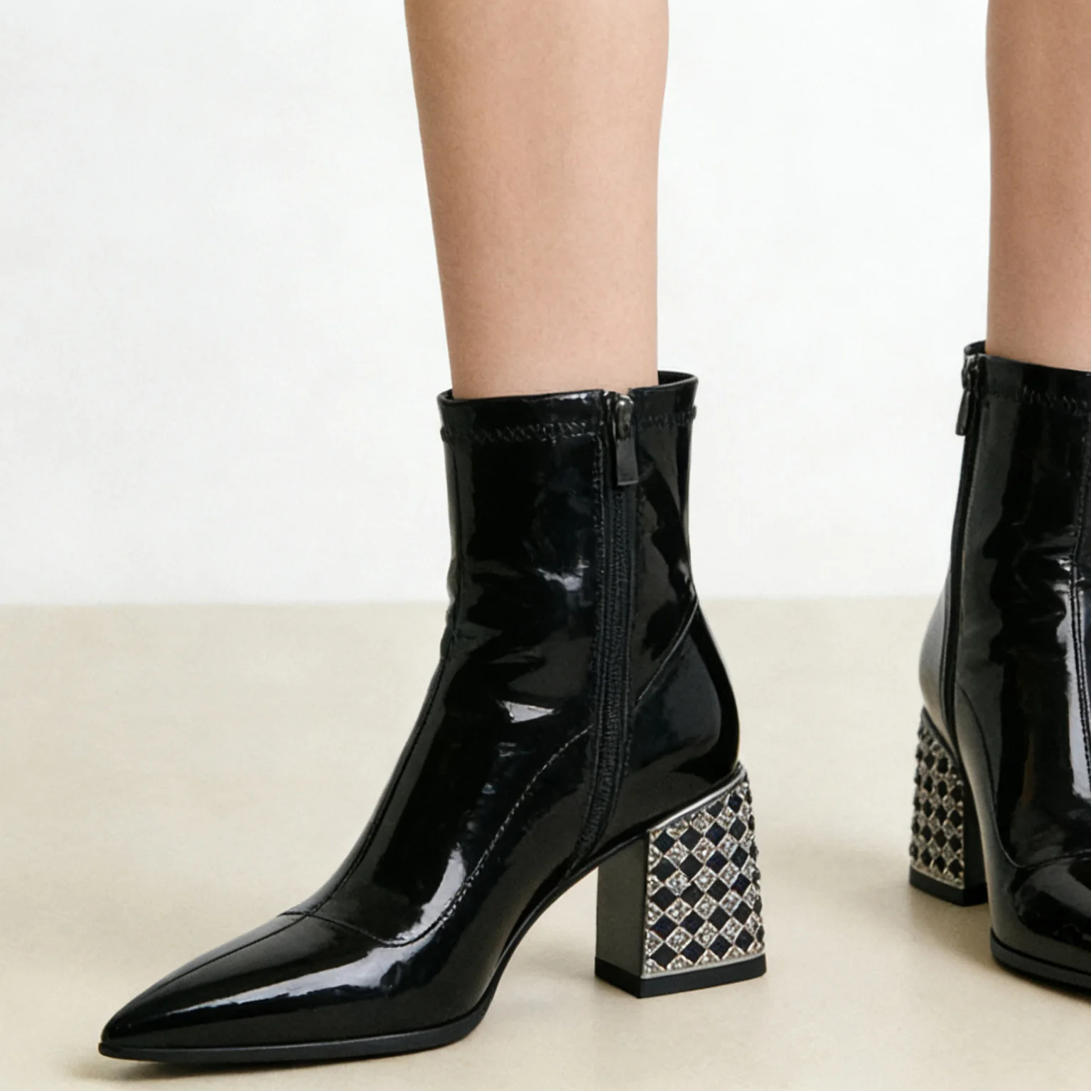 Women's Black Action Ankle Boots - Embellished Chunky Block Heel Pointed-Toe Dress Footwear 2026 Autumn