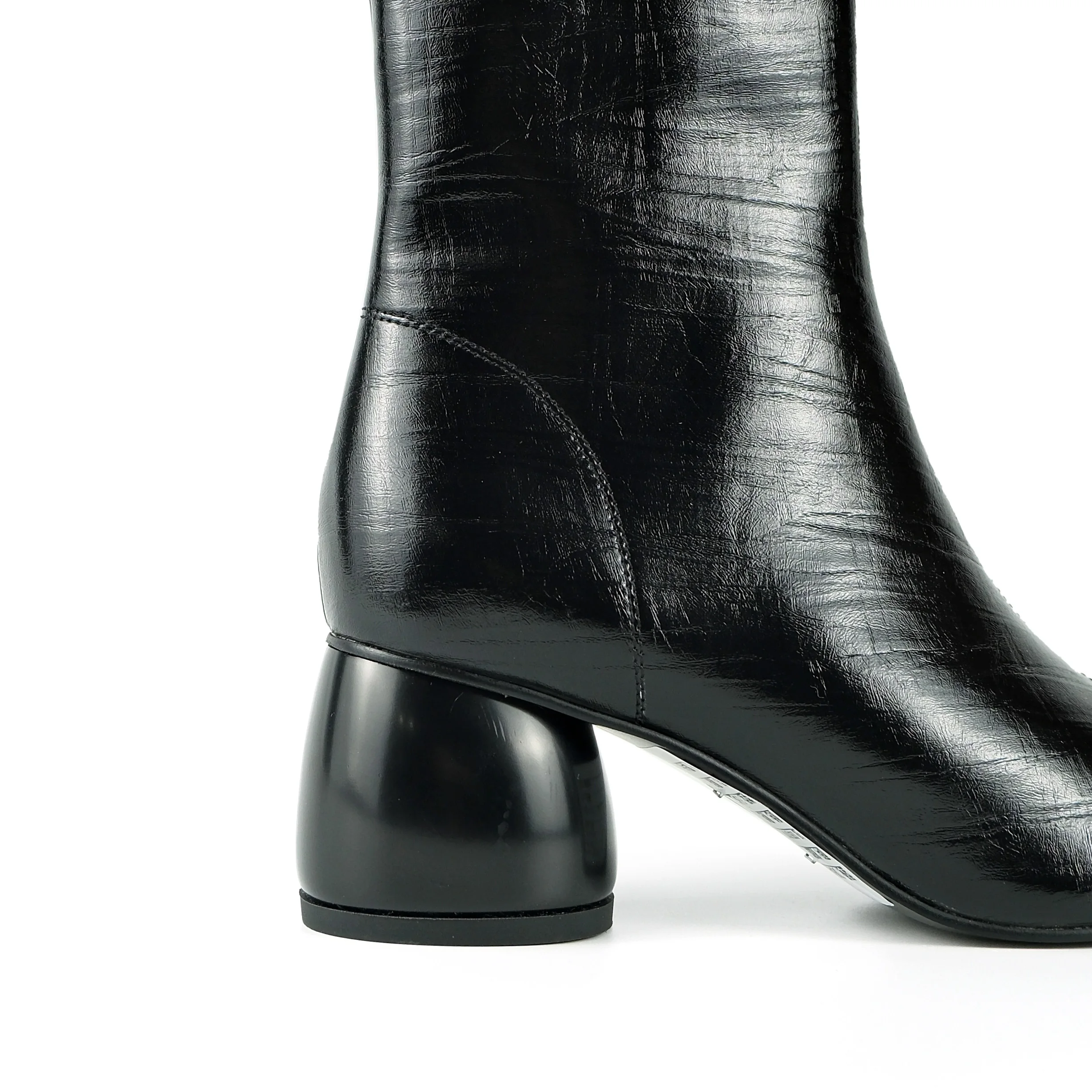 Women's Korean Formal Black Crinkled Patent Leather Ankle Boots-Square Toe Chunky Heel Comfort Height Increasing Fashion Autumn